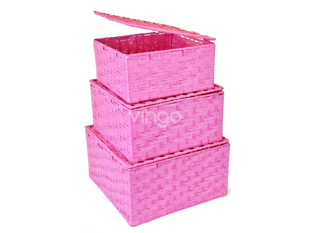3 db tárolódobozból álló készlet rózsaszín tetővel