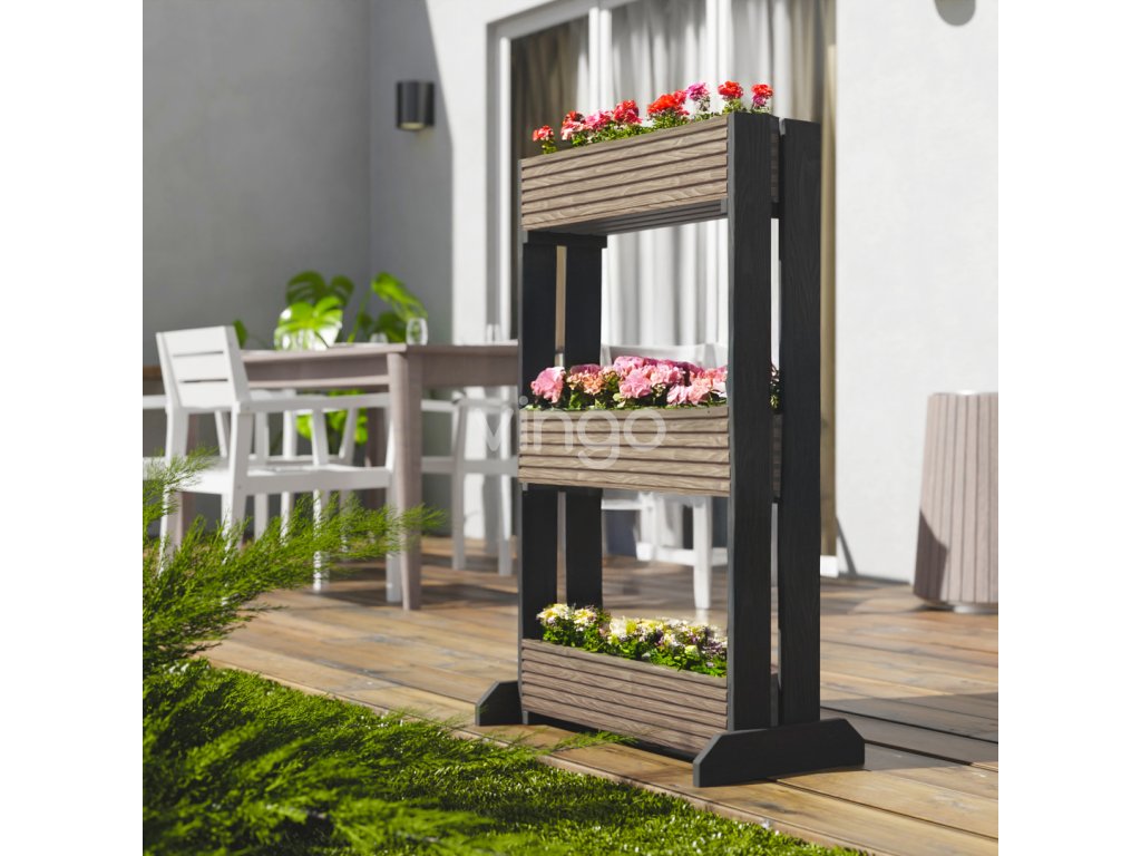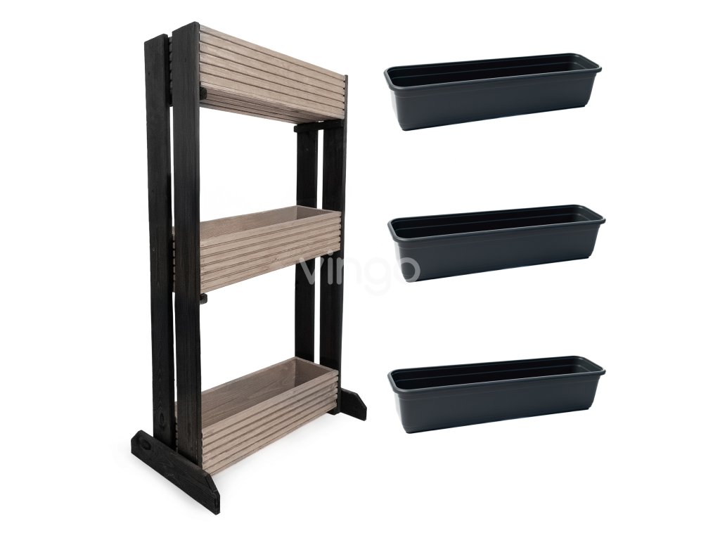 - Fából készült szerkezet: 3 szintes fa virágláda állványaink kiváló minőségű fából készülnek, amely hosszú élettartamot és időjárásállóságot biztosít. A szerkezet sötét színű.