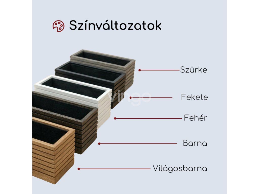 - Elegáns: A fa láda a természet varázsát viszi minden belső térbe. Esztétikus megjelenése minden helyiségbe illik. Hangulatos légkört kölcsönöz a térnek, bármilyen növény dísze lesz.