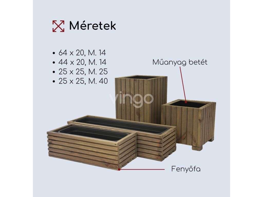 - Elegáns: A fa láda a természet varázsát viszi minden belső térbe. Esztétikus megjelenése minden helyiségbe illik. Hangulatos légkört kölcsönöz a térnek, bármilyen növény dísze lesz.