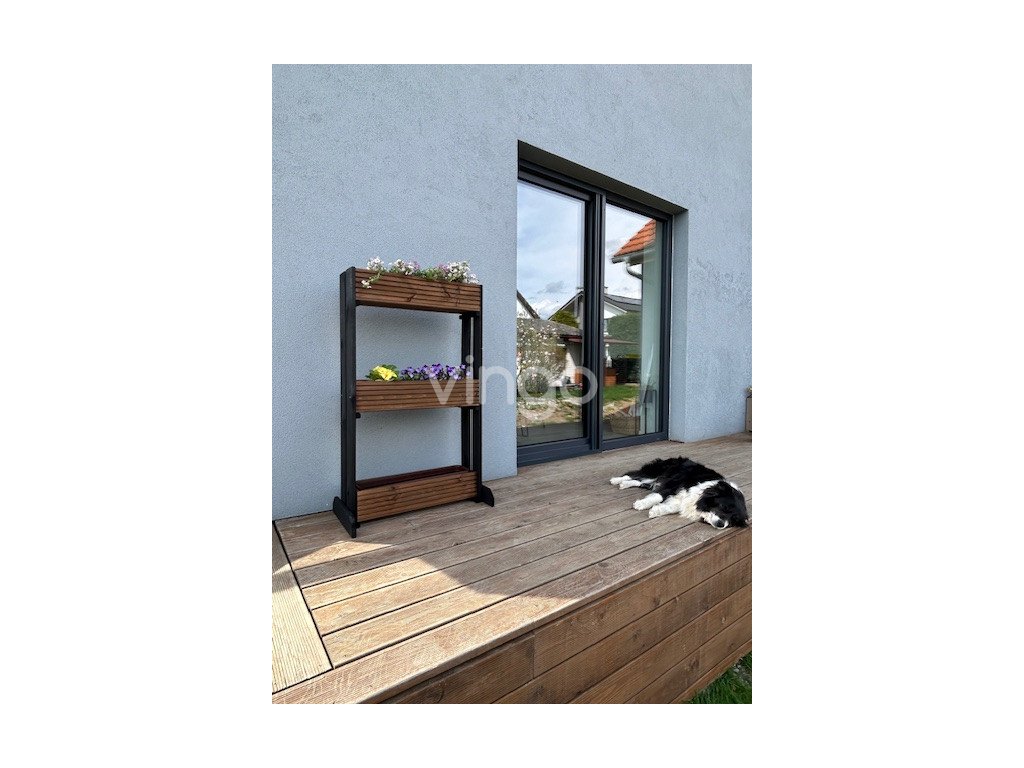 - Egyszerű virágláda-rögzítés: Praktikus kialakításának köszönhetően könnyedén rögzíthet három fa virágládát a csomagban található csavarokkal. A kültéri állvány lapra szerelve érkezik.