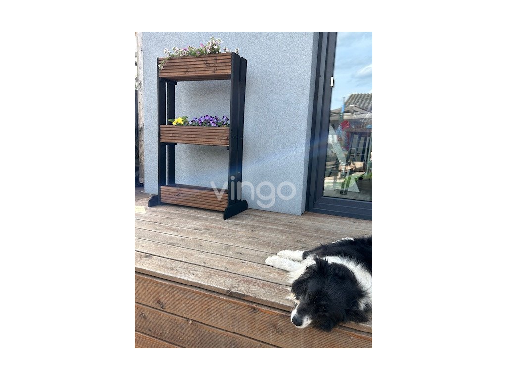 - Fa szerkezet: Háromszintes fa virágtartó állványaink kiváló minőségű fából készülnek, amely hosszú élettartamot és időjárásállóságot biztosít.