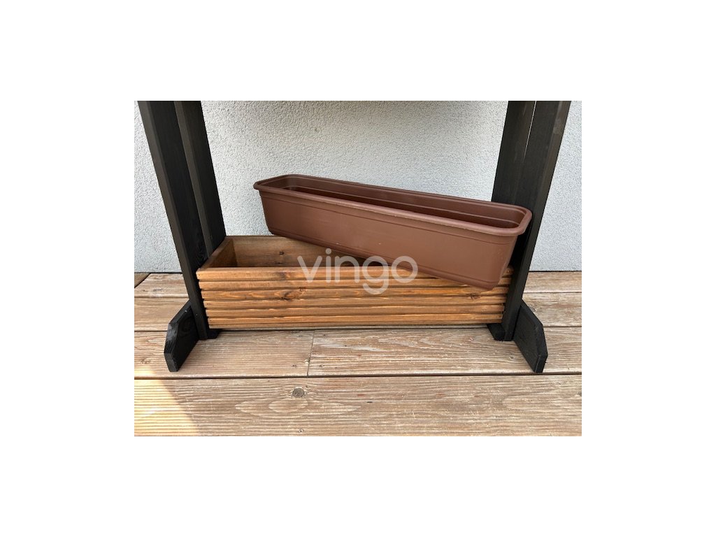 - Műanyag betétek: Minden virágláda műanyag betéttel van ellátva, amely védi a fát és biztosítja az optimális nedvességmegtartást a növények számára. A virágláda külső mérete 64 x 20 cm.