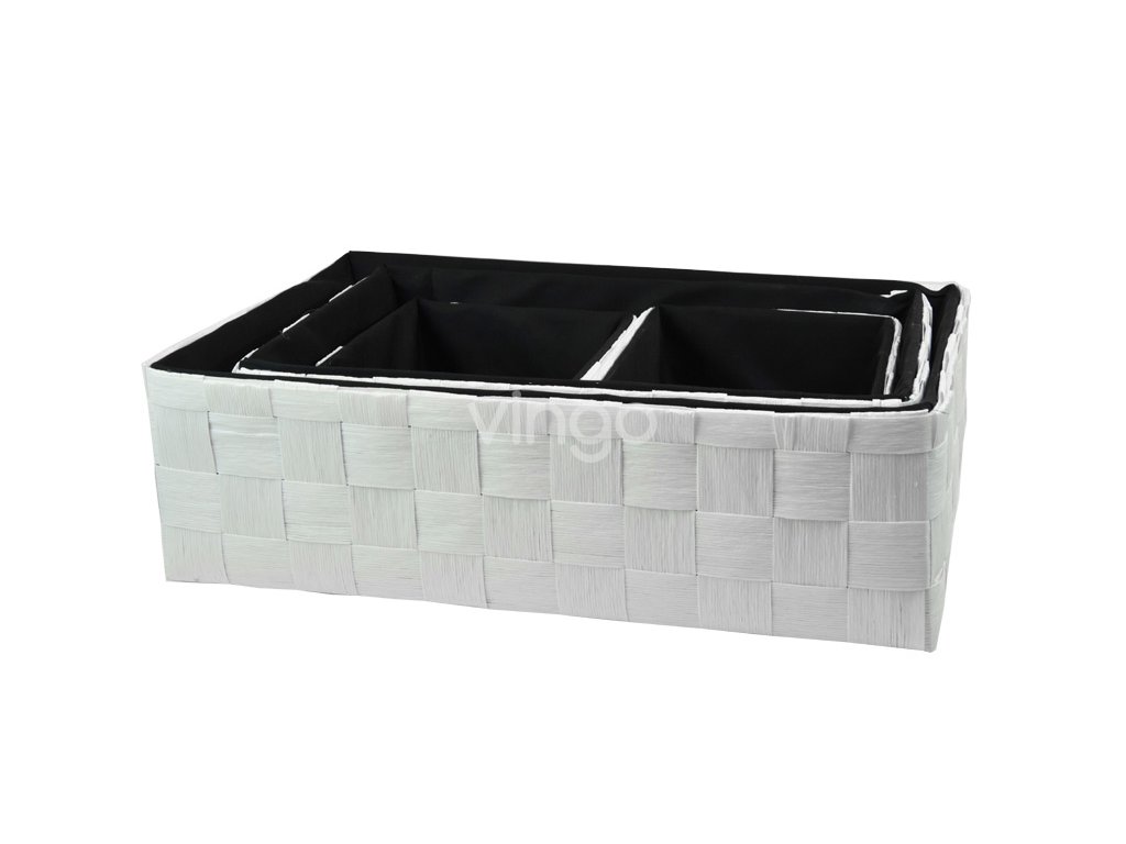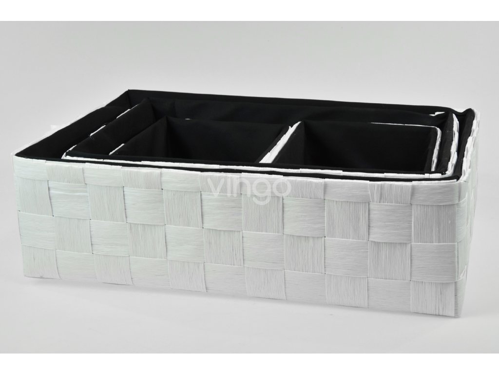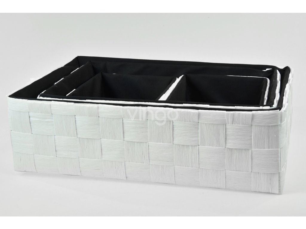 - Fehér-fekete A fehér és a belső fekete kombinációja modern, luxus megjelenést kölcsönöz a dobozoknak. A kosarak belseje fekete szövet.