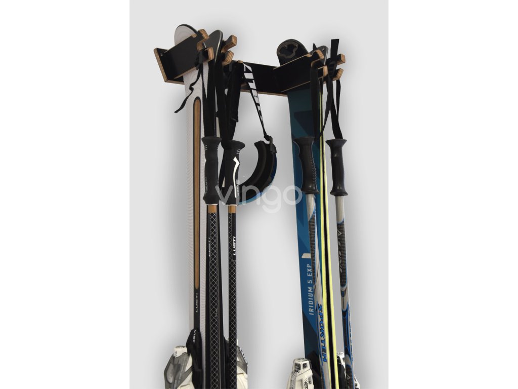- 2 pár síléchez: A fali állvány biztonságos és áttekinthető tárolást biztosít két pár síléc számára, ezzel helyet takarít meg és rendet tart.