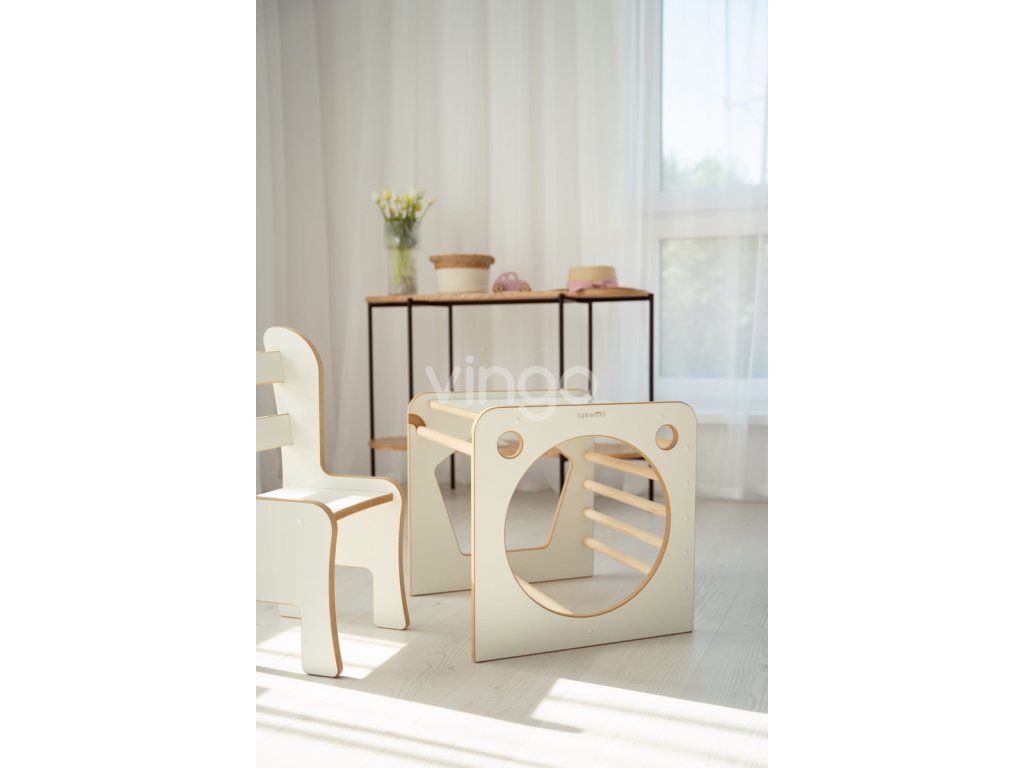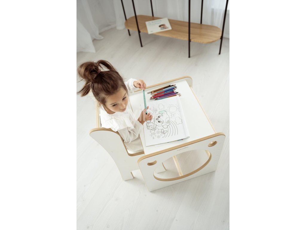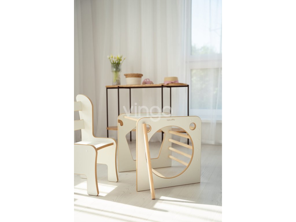 - Biztonságos: Az asztal a legmagasabb minőségű anyagokból készült, higiéniai tanúsítvánnyal, amely antibakteriális tulajdonságokkal rendelkezik. Minden él gondosan lekerekített. Az anyag az alábbi szabványoknak megfelelően tesztelt és tanúsított: EN 71-1, EN 71-2, EN 71-3, EN 71-8. Ezek a szabványok a mechanikai és kémiai tulajdonságokra, gyúlékonyságra és gyermekbiztonságra vonatkoznak. Ezt a CE tanúsítvány igazolja.