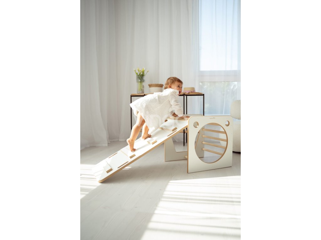 - Mászáshoz: Az oldalsó nyílások játékos elemet kínálnak a gyerekeknek, ahol mászhatnak, felfedezhetik a teret és játszhatnak. Ez az interaktív elem fejleszti a mozgáskészségüket és játékérzéküket.