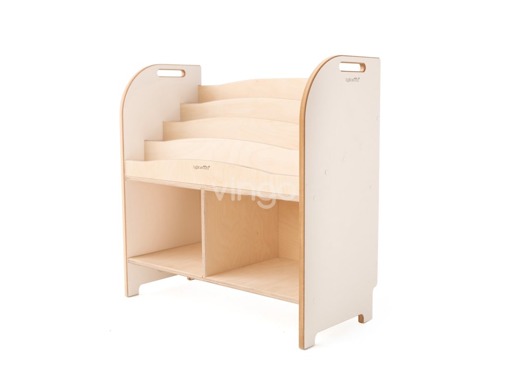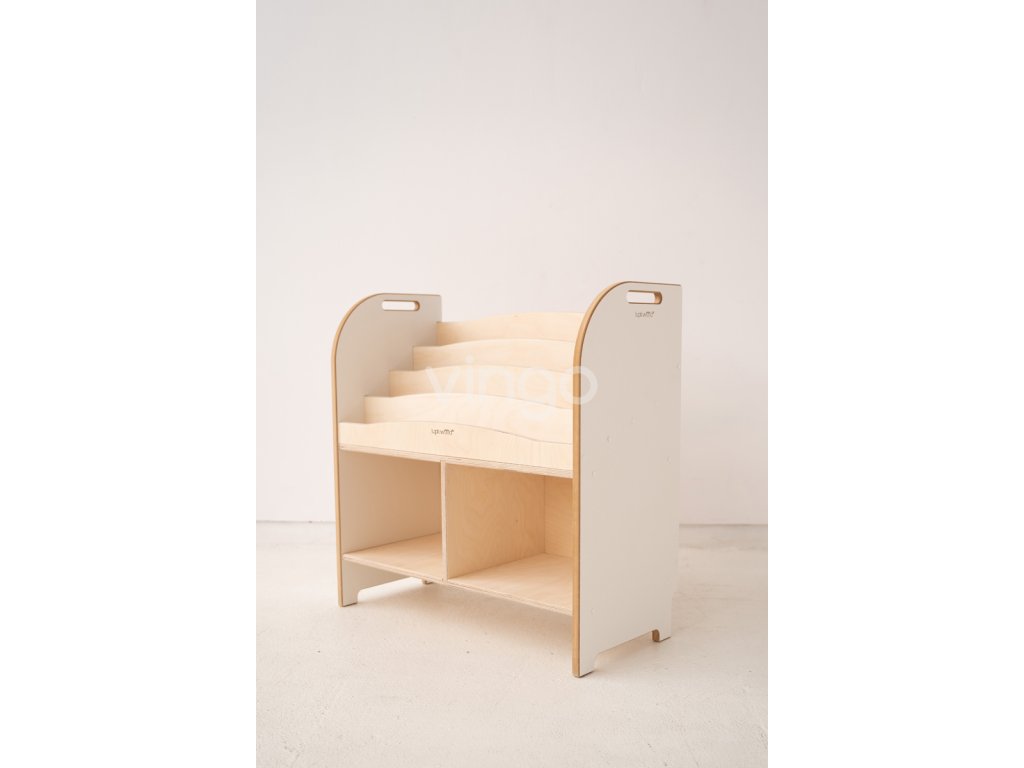 - 4 polccal: A felső rész négy könyveknek szánt polcot tartalmaz, amelyek elegendő helyet biztosítanak kedvenc könyvek, mesék vagy magazinok elhelyezéséhez, minden könyv könnyen elérhető.