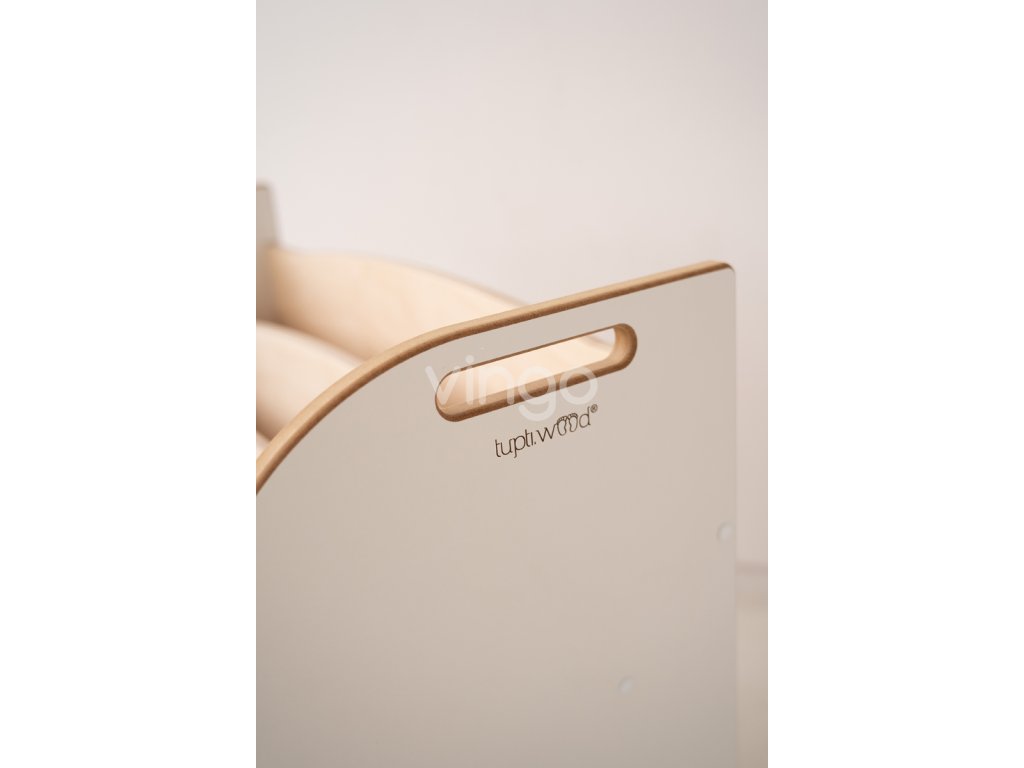- Tárolóhellyel: Alul két széles polc található egymás mellett, amelyekbe tárolódobozokat vagy kosarakat helyezhetünk el a játékok, iskolai kellékek vagy ruhák könnyű tárolásához. Ez a rész lehetővé teszi a gyerekek számára az egyszerű hozzáférést és rendszerezést.