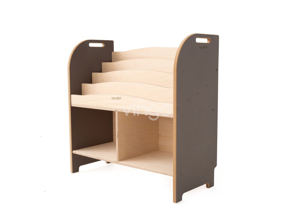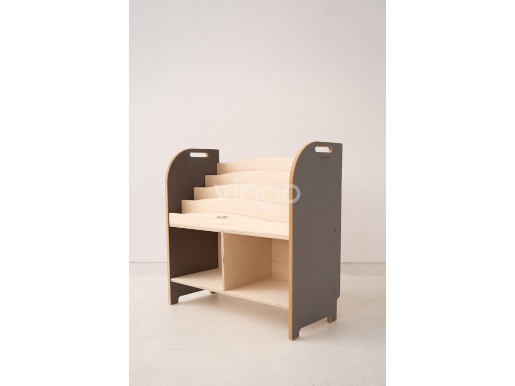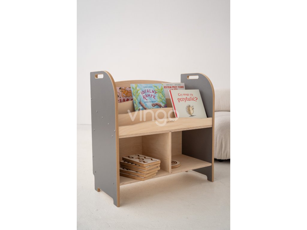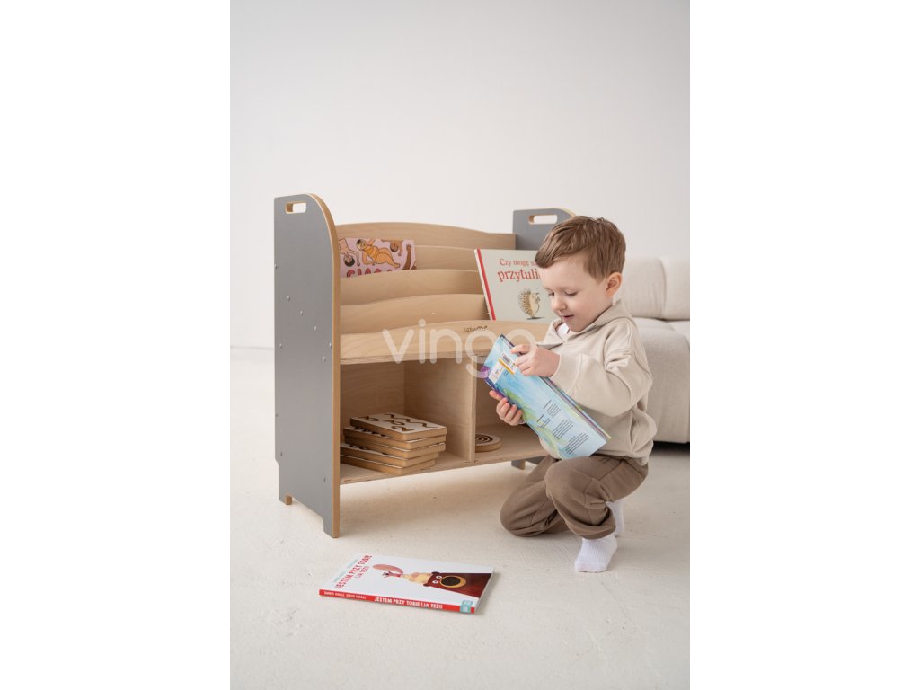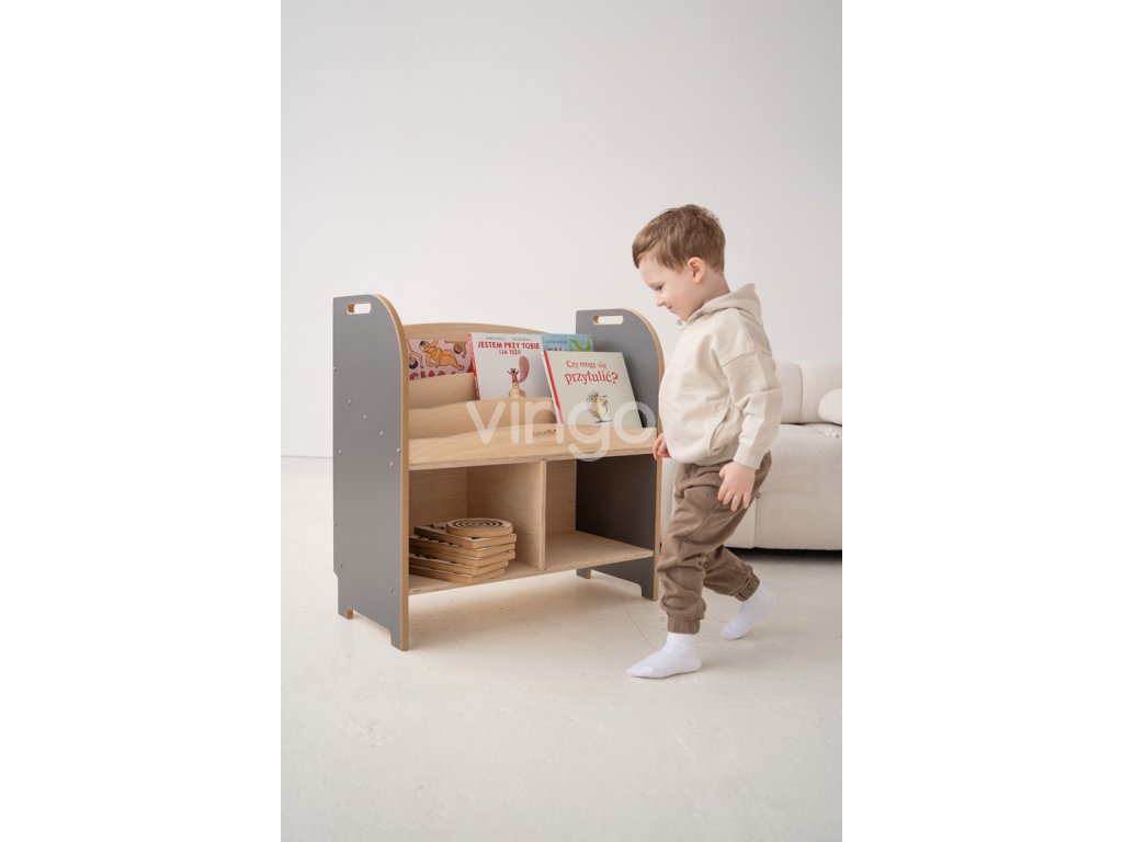 Gyermek Montessori könyvespolc könyvespolccal, szürke - 74 x 75 cm