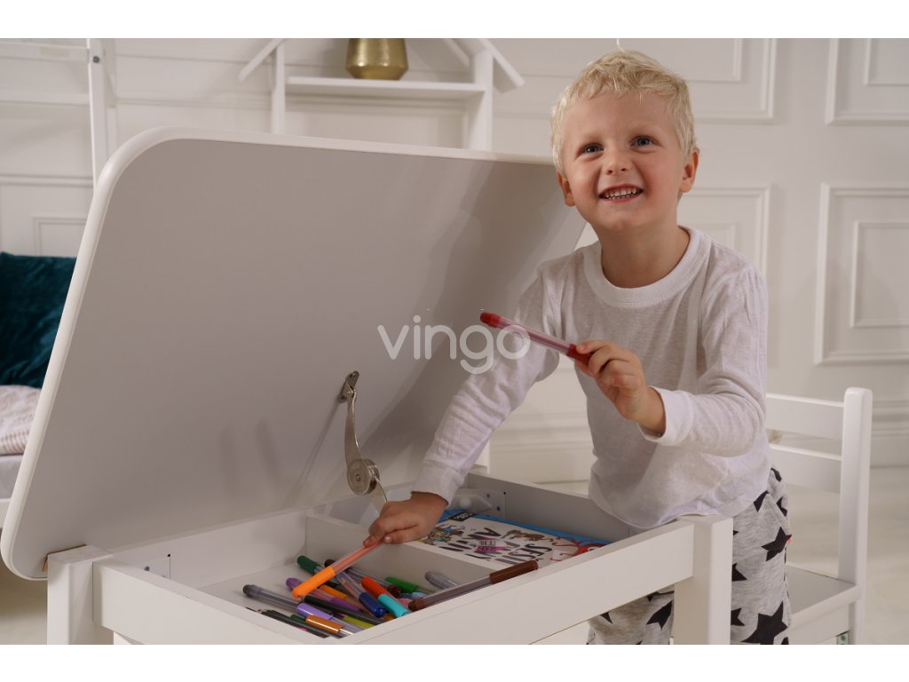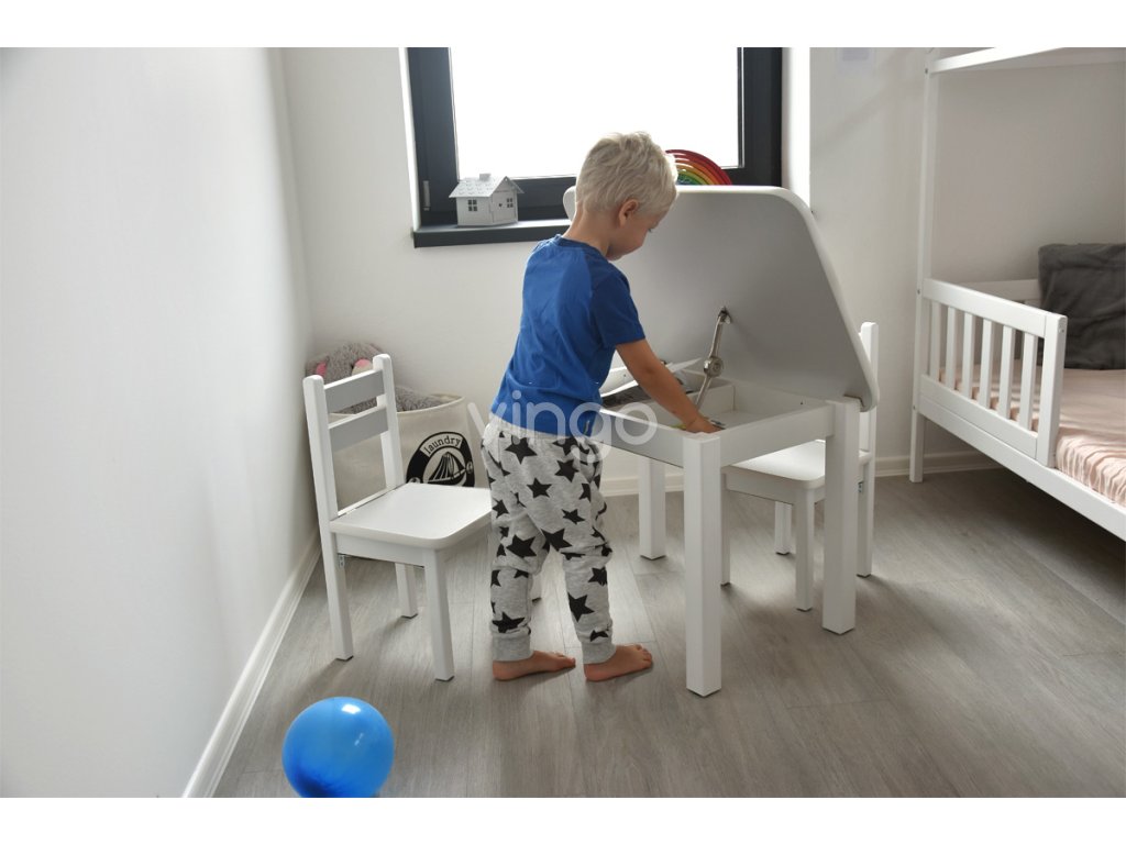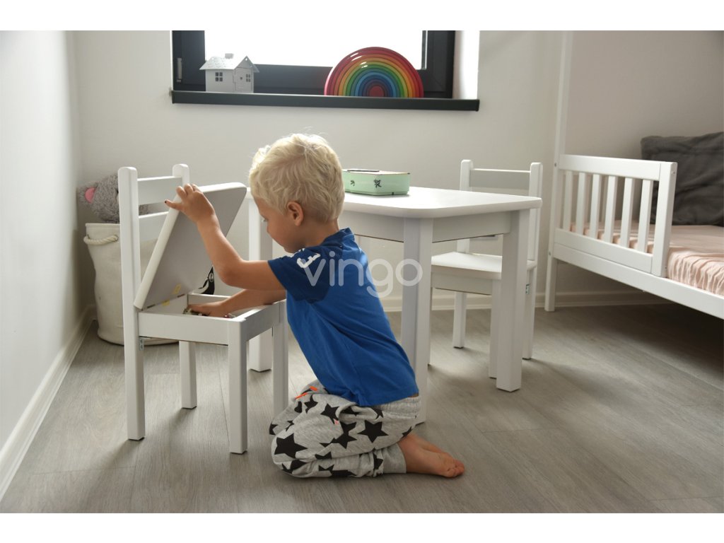 - Praktikus, rejtett tárhellyel. Az asztalra könnyen elfér zsírkréta, jegyzetfüzet vagy kifestőkönyv. Nagy stabilitásának köszönhetően gyermekei téglatornyokat építhetnek, modellezhetnek és játszhatnak rajta, de kisebb partikhoz, baráti látogatásokhoz is kiváló. Az asztallap egyszerűen kihajtható és megtartható. A rejtett tágas rekesz kiválóan alkalmas zsírkréta tárolására vagy gyermekkincsek, ékszerek és játékok elrejtésére.
