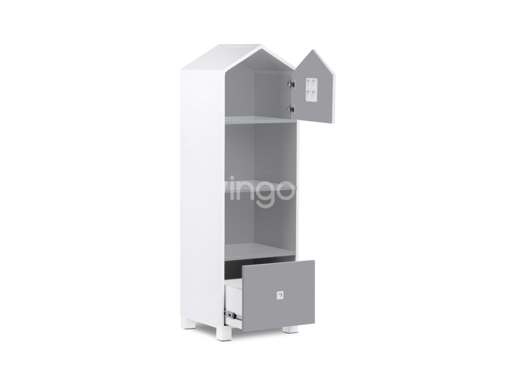- Kis és nagy szobákba is: A házikó formájú könyvespolc szélessége 47 cm, mélysége 45 cm, magassága pedig 152 cm. A szekrény 16 mm vastag laminált faforgácslapból készült.