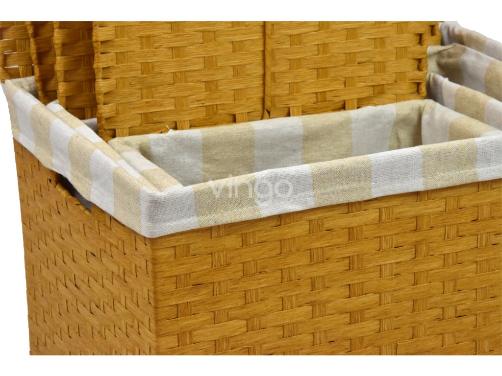 - Homokbarna: mind a doboz, mind az egyik oldalon csuklós fedél homokszínű. A belső mosható anyag barna árnyalatú kockás mintával készült. Az anyag masnikkal van rögzítve, nagyon könnyen eltávolítható és visszahelyezhető.