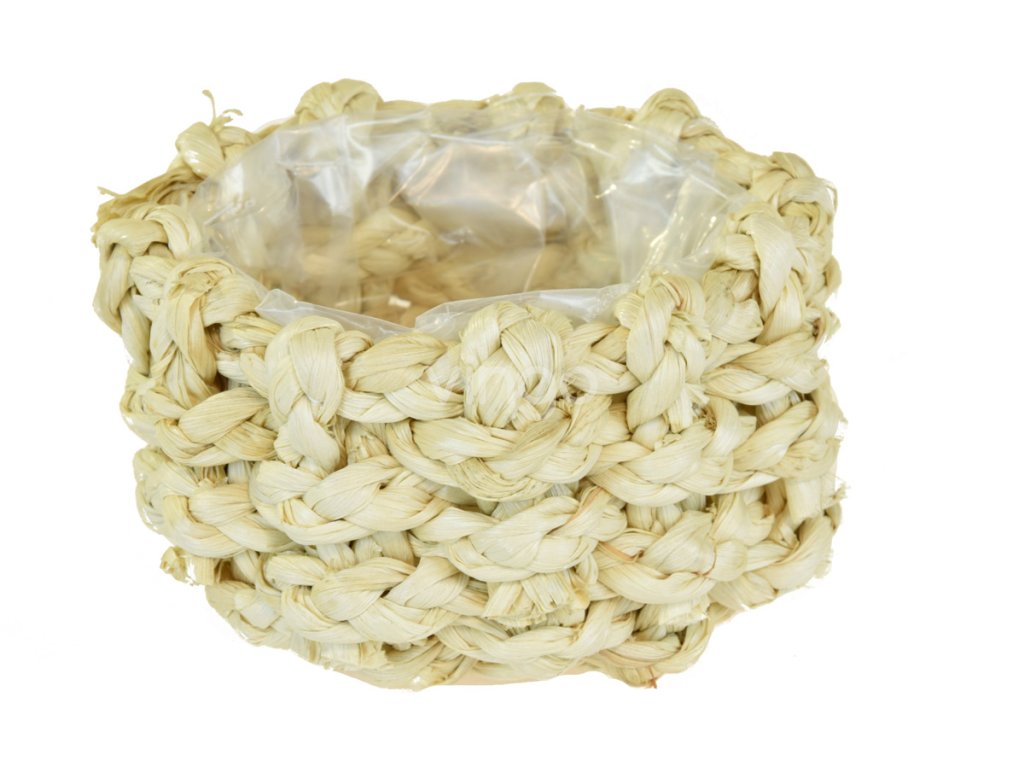 A világos natúr színű kukoricából készült kerek virágcserép belső műanyag betéttel van ellátva. Bármilyen belső térbe illik, bármilyen virághoz.Termékinformáció: