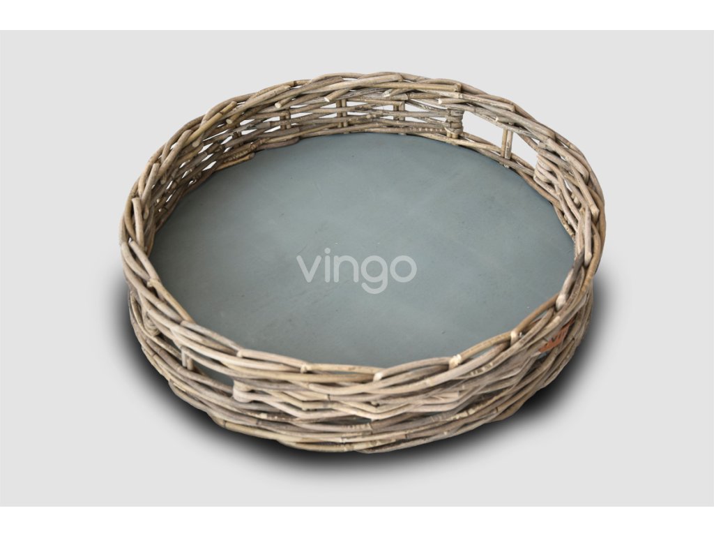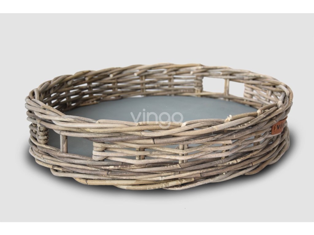 Kerek rattan tálca - szürke, átmérője 47 cm