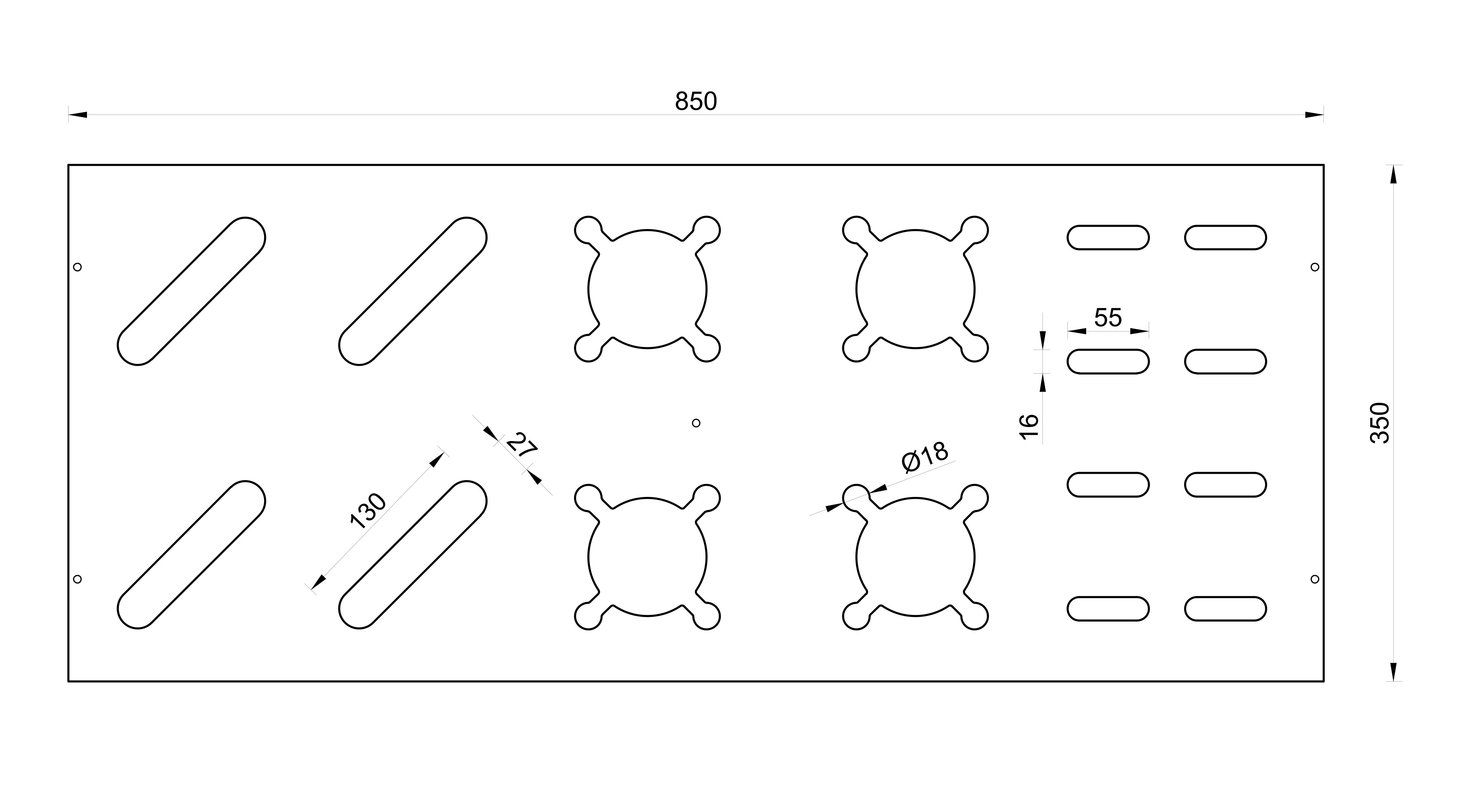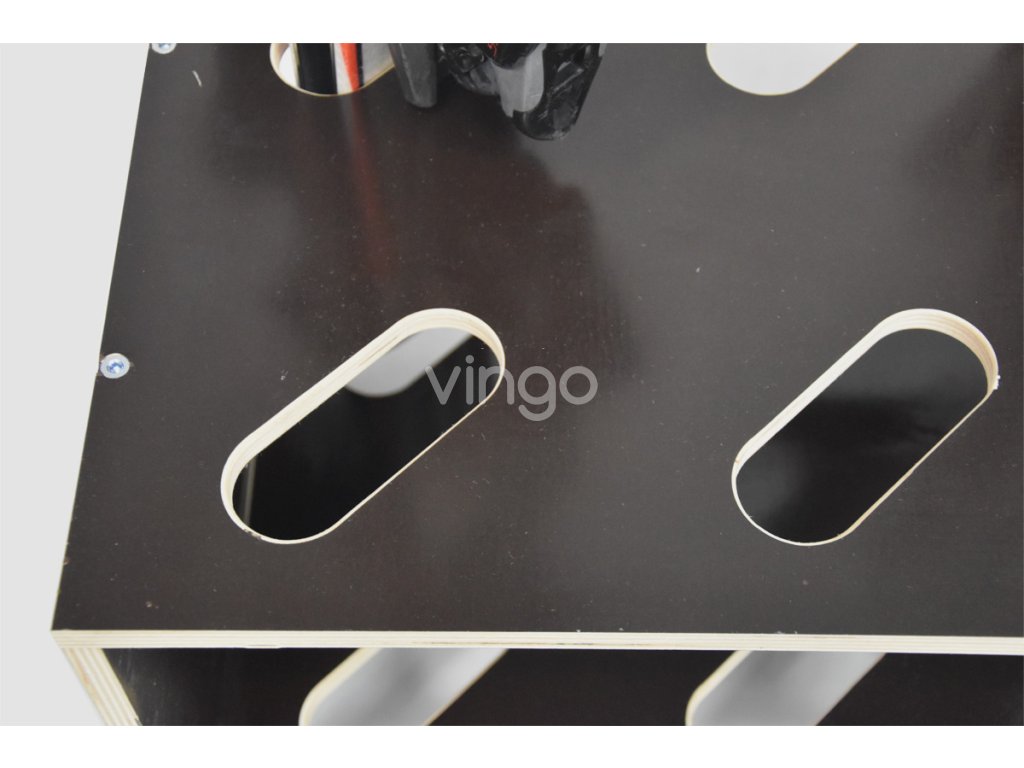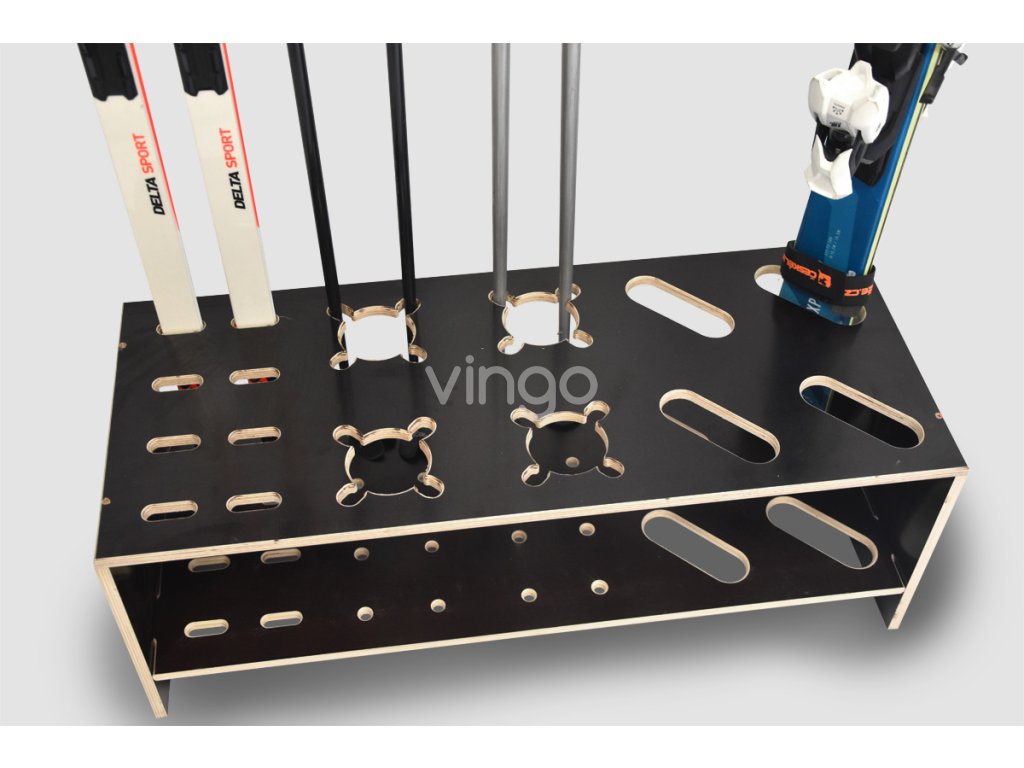 Tágas: Az állvány 4 pár sílécre, 4 pár sífutóra és 8 pár botra van tervezve. A sílécek számára kialakított nyílás méretei 11 x 4,5 cm. Nagyobb nyílás is készíthető. Minden rés egy sífutó számára van. A sífutók leggyakrabban használt sarokrészének mérete 40 - 48 mm, így probléma nélkül elhelyezhetők egy 55 x 16 mm-es nyílásba. A botok számára kialakított nyílások úgy készültek, hogy a botok egyenesen álljanak.