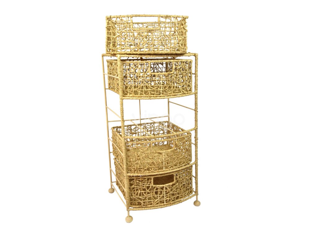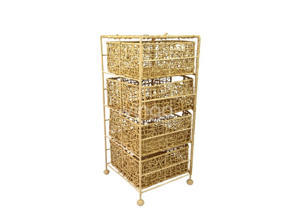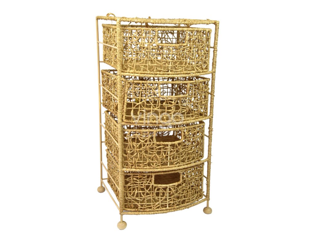- Könnyű: A komód drótszerkezettel rendelkezik, amely stabillá teszi. A szerkezet kukoricahéjba csomagolt, a polc könnyű. Tehát, ha szereti és gyakran mozgatja a bútorokat, a polcok alacsony súlyának köszönhetően a háta védett lesz. 12 cm-esek. Még a fiókok is kukoricahéjjal burkolt drótszerkezetűek, jól tartják a formát. A fiókok teljesen kivehetők, így a hátsó részükben való keresgéléskor sem kell sokáig előrehajolni. A kosarat az elülső részének nyílásánál fogva ki kell venni, és oda kell helyezni.