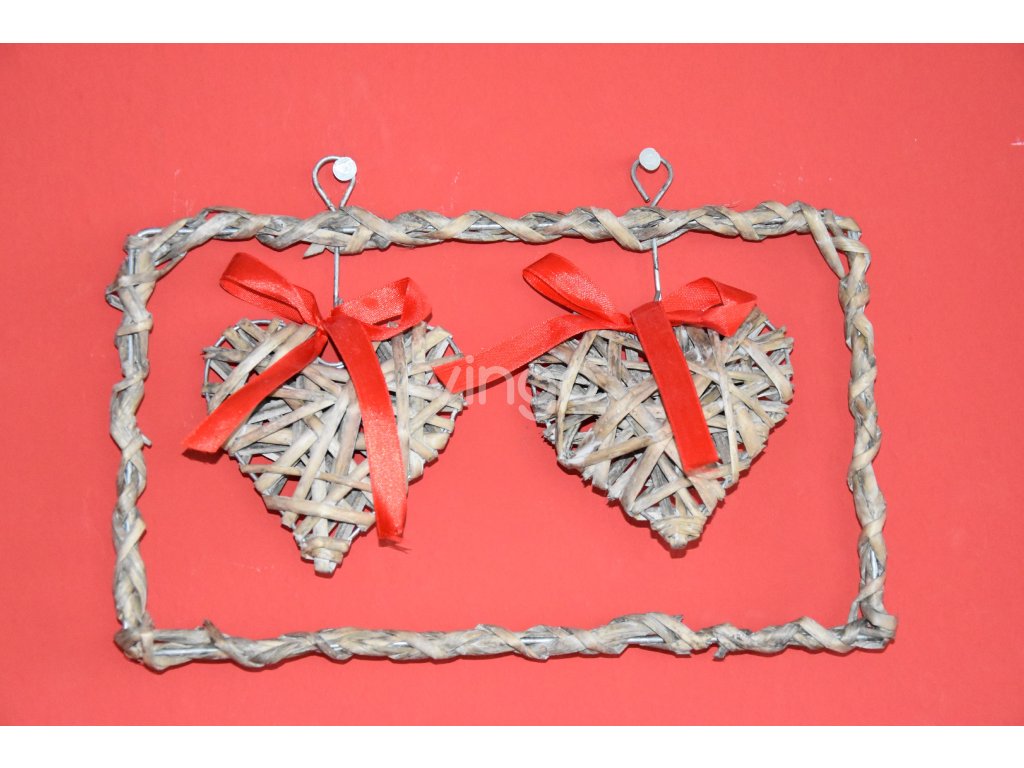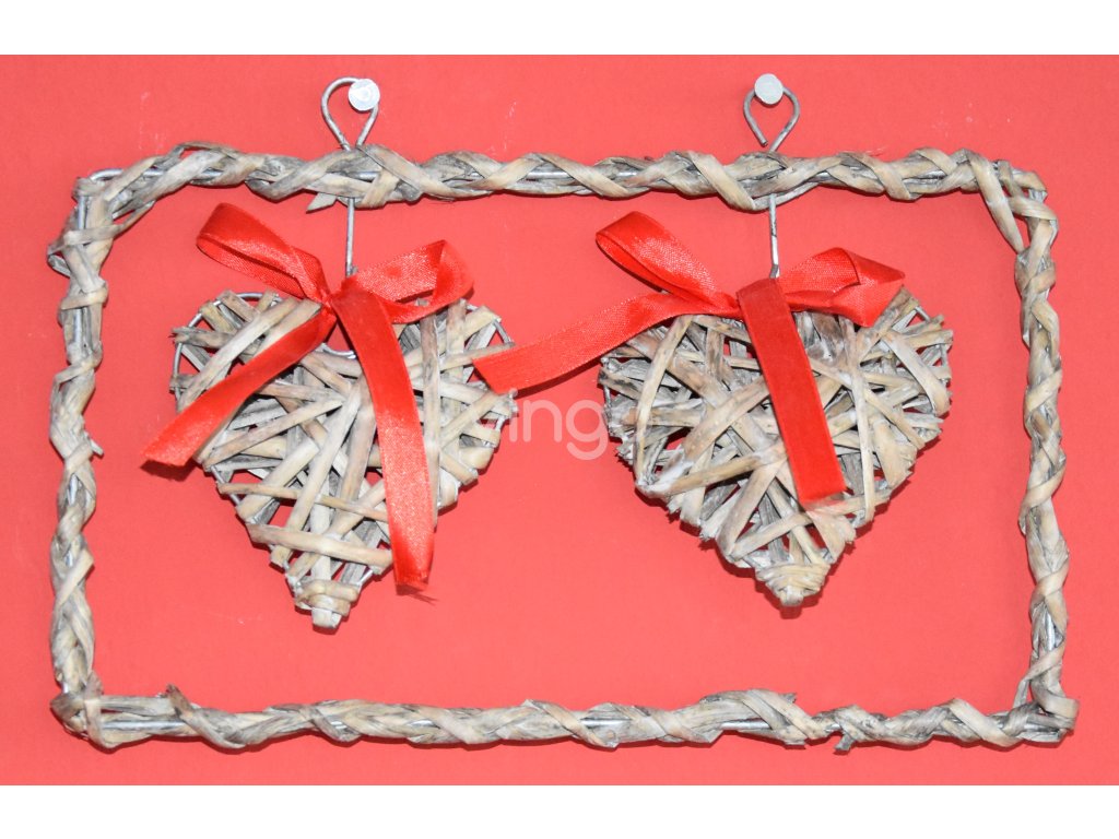 - Gonosz: A téglalap alakú díszítés, amelyben két szív függ, fonott, drótkerettel és 2 akasztható hurokkal.
