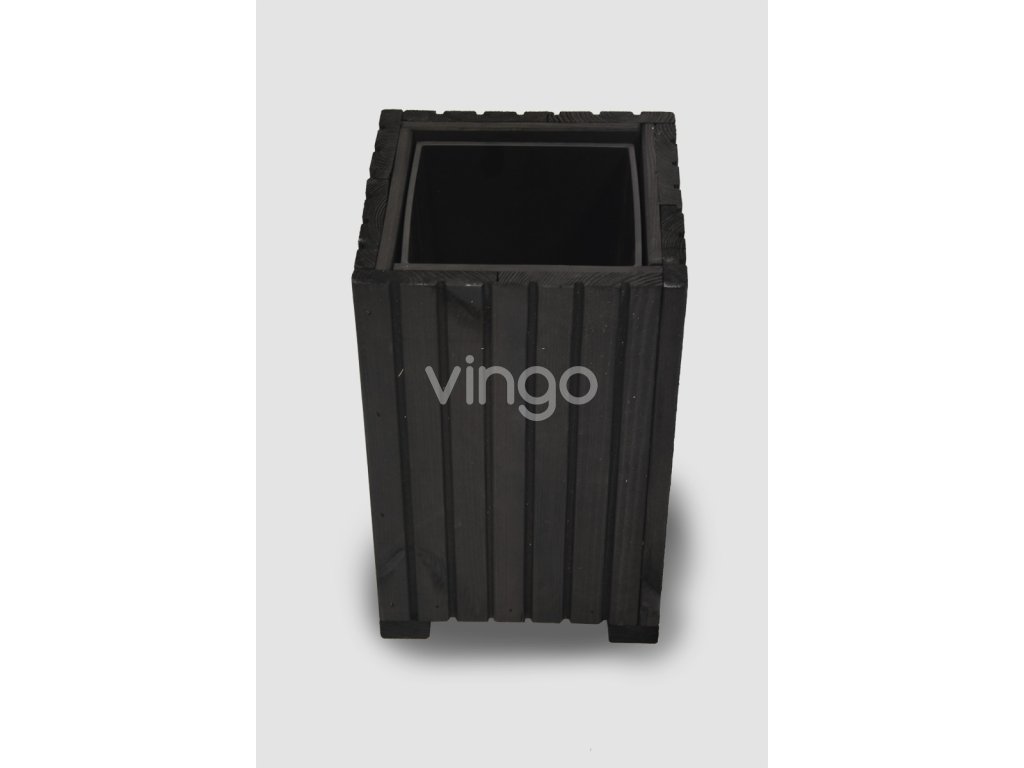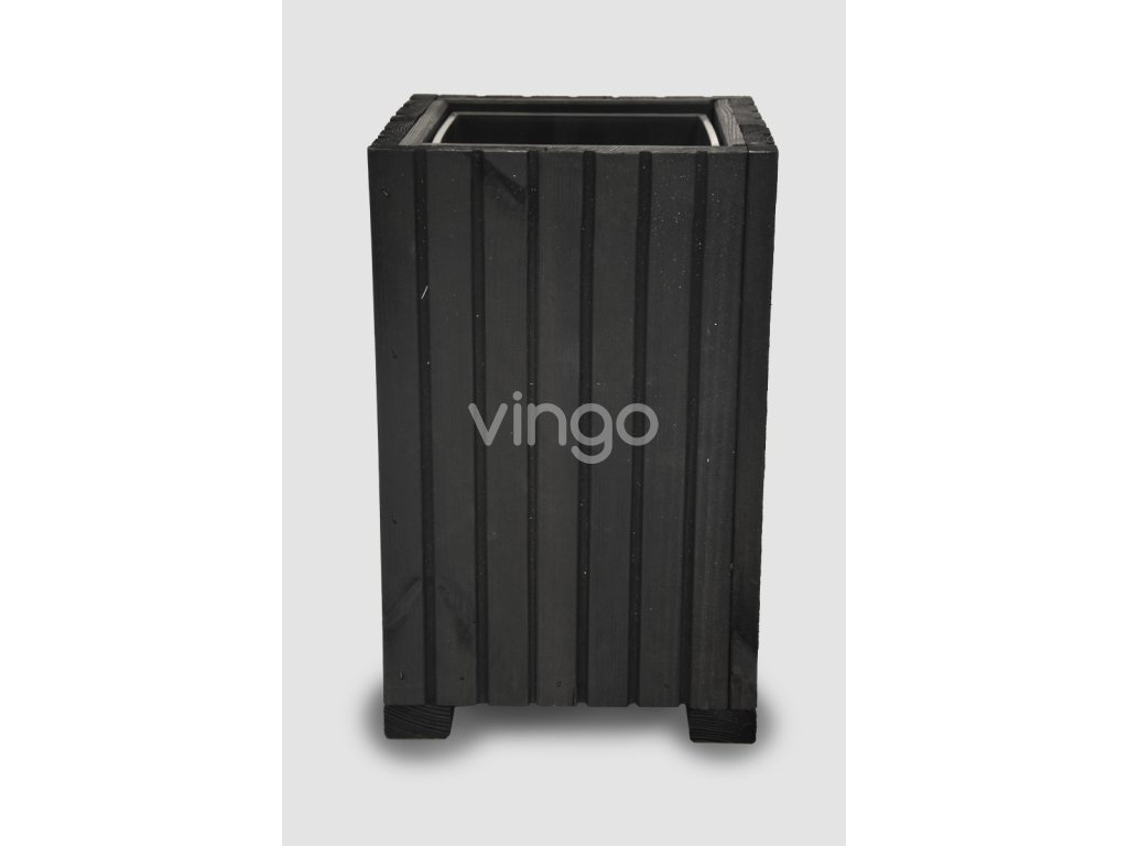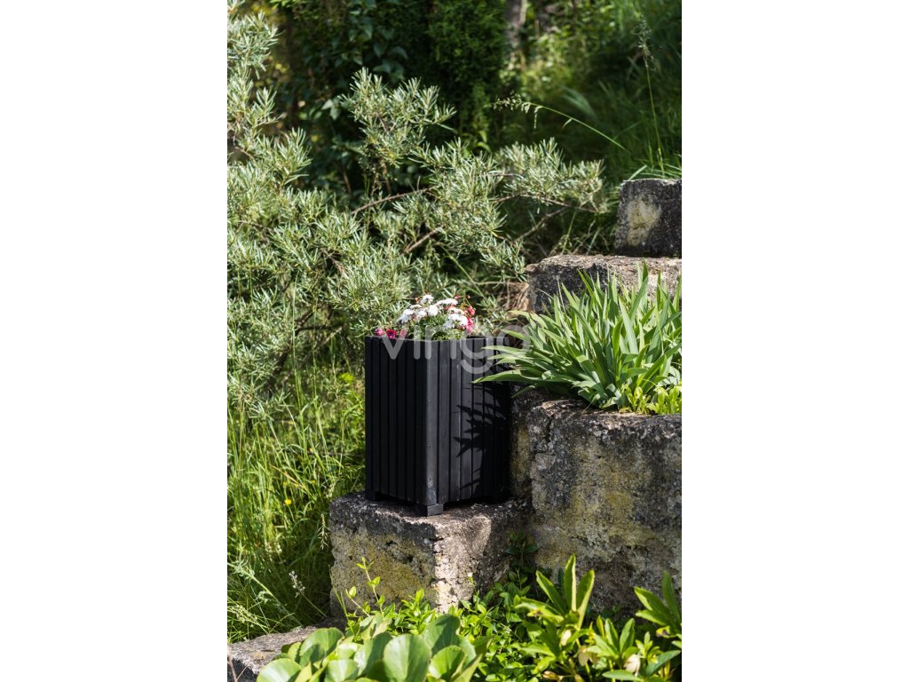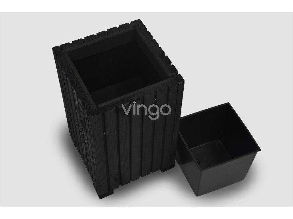 Magasabb négyzetalapú faláda műanyag betéttel - fekete, 25x25x40