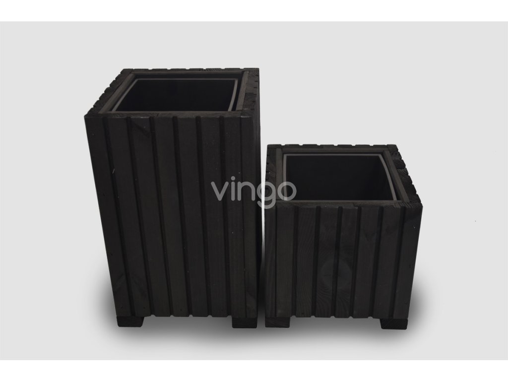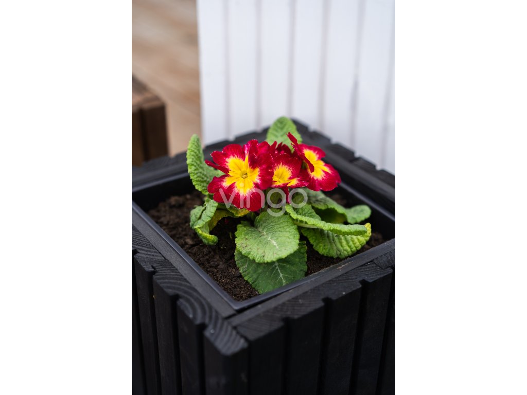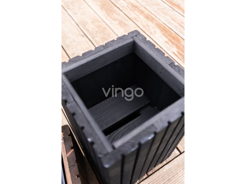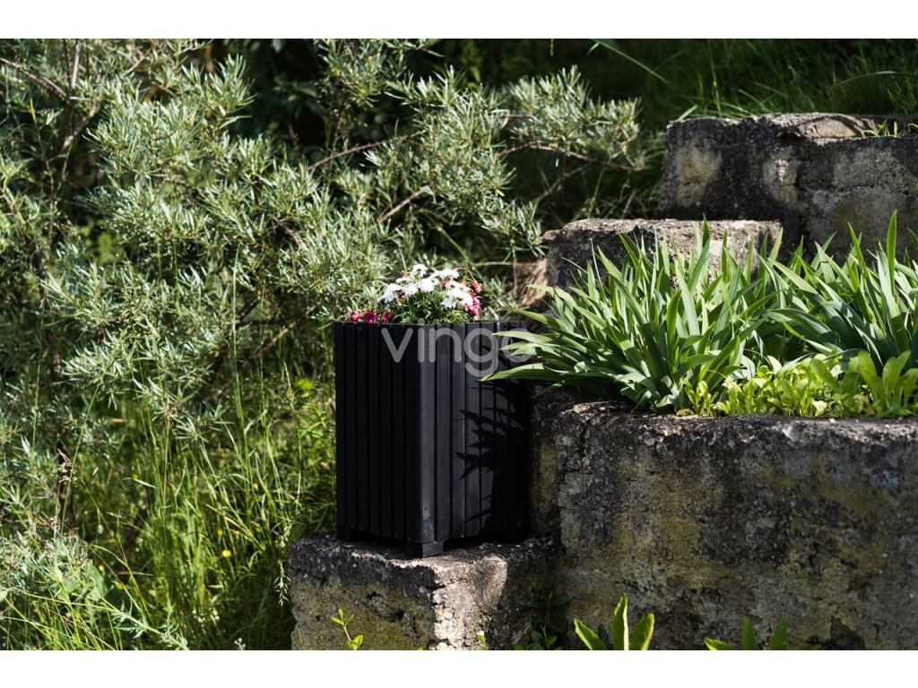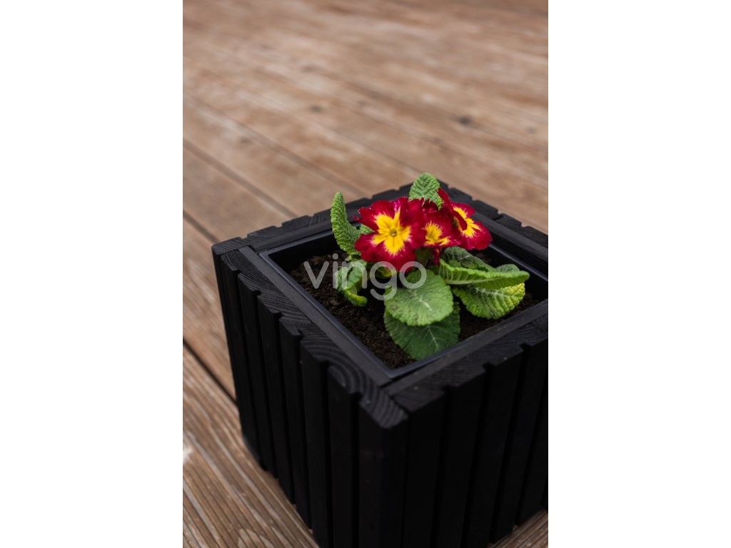 Magasabb négyzetalapú faláda műanyag betéttel - fekete, 25x25x40