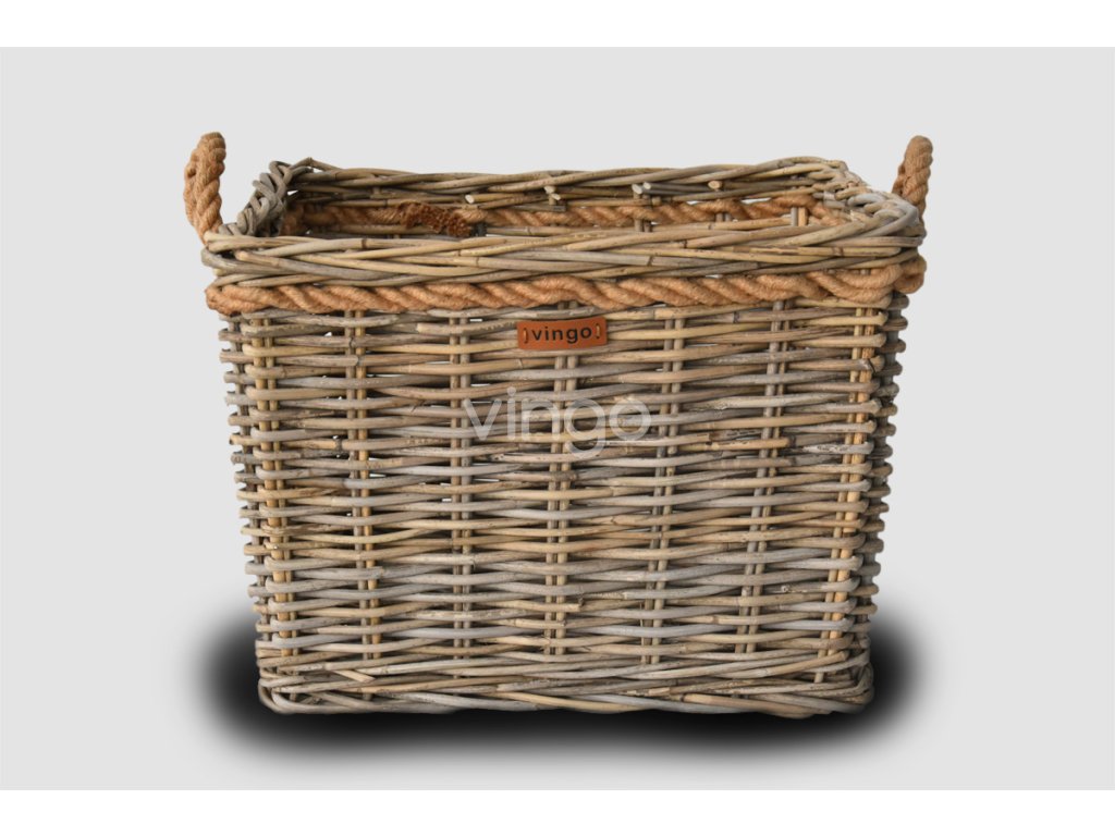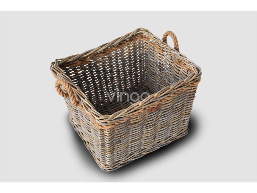 Nagy rattan tárolókosár drótfogantyúval, négyzet alakú - szürke