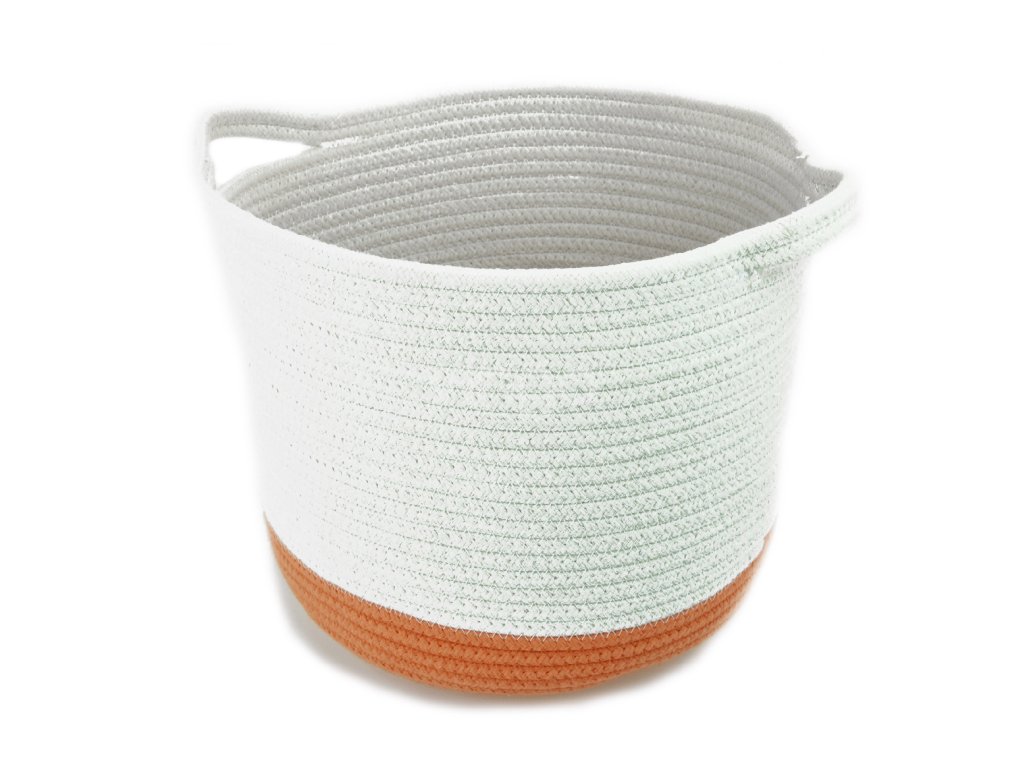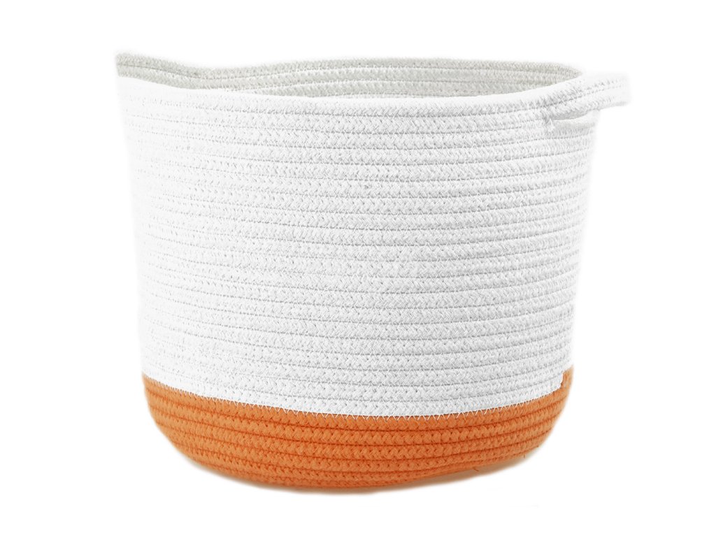 - Fehér-narancs: A földes színkombinációban lévő kosár is passzol minimalista dizájnú belső terekbe. Ezenkívül a narancssárga szín javíthatja a hangulatot.