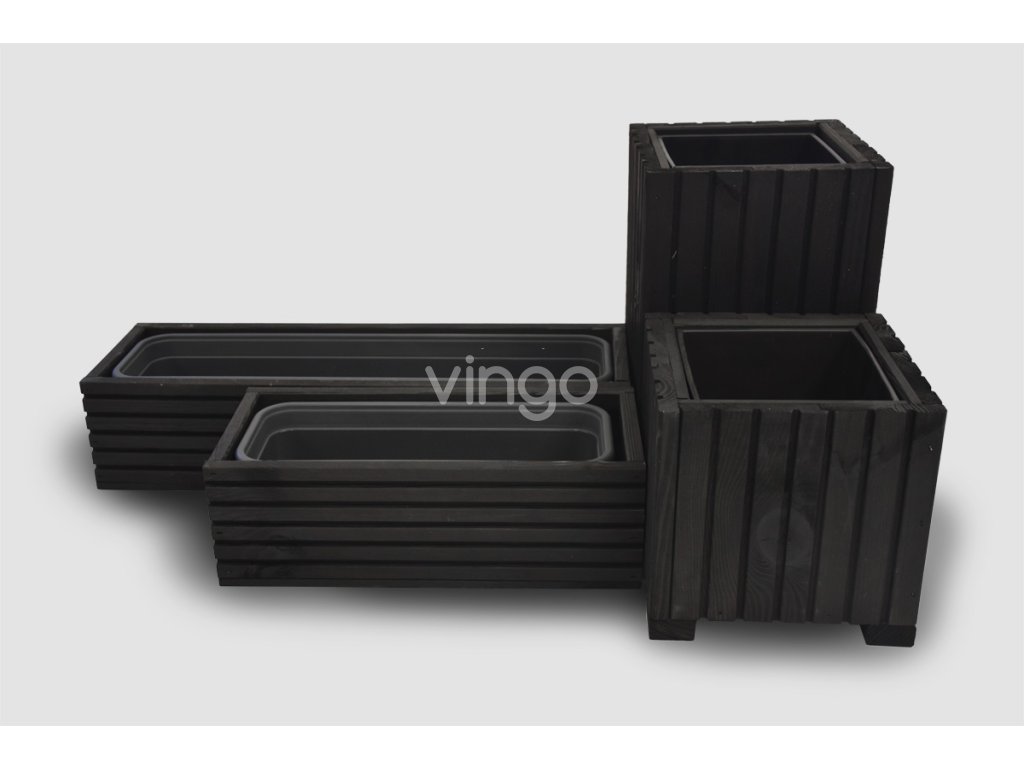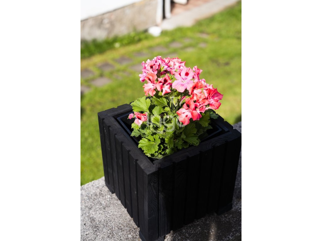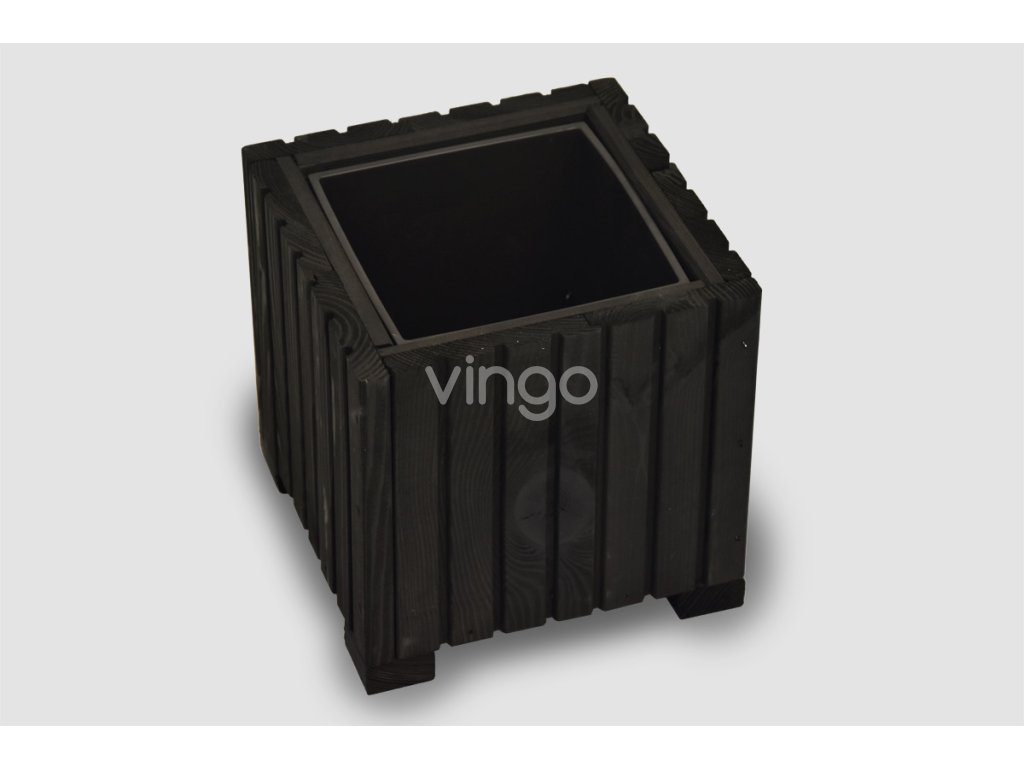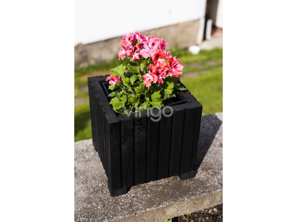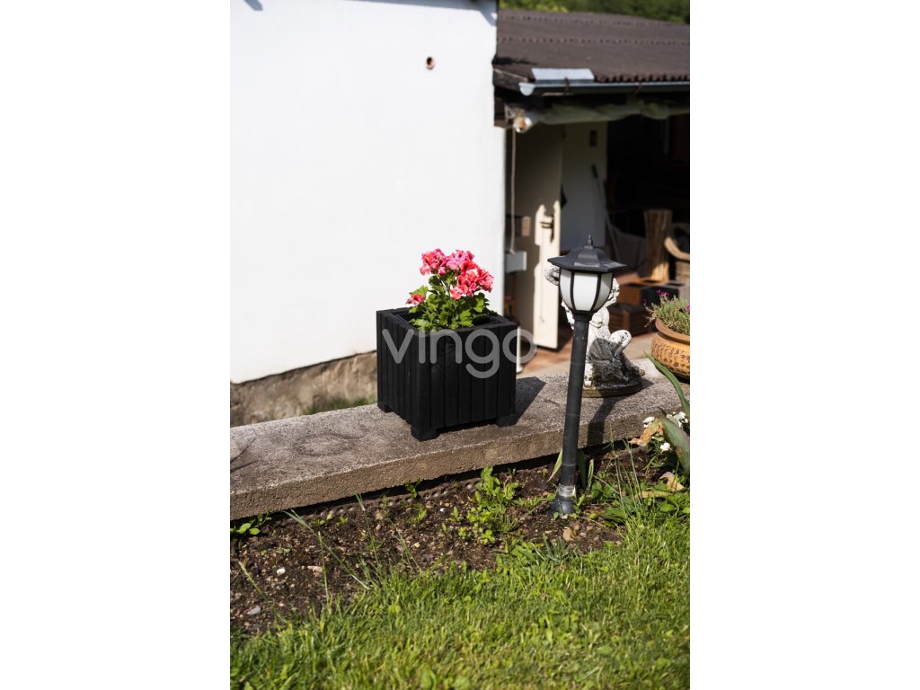 Négyzet alakú faláda műanyag betéttel - fekete, 25x25x25