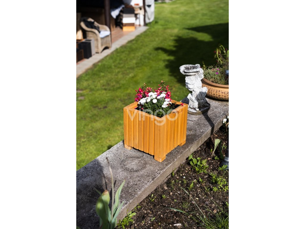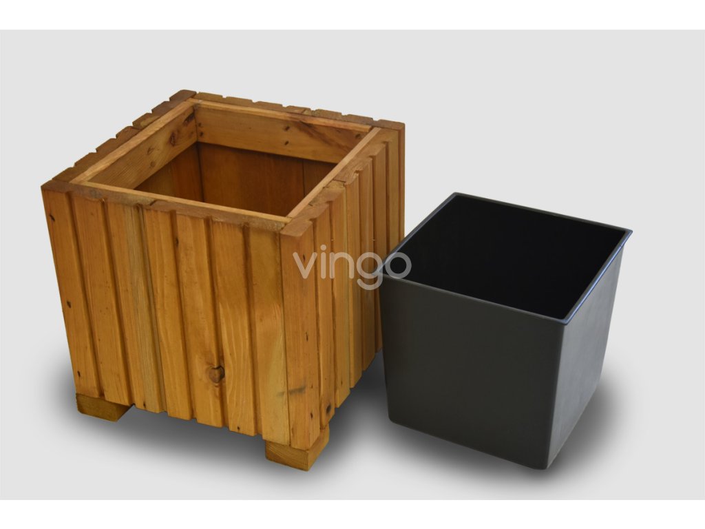 Négyzet alakú faláda műanyag betéttel - világosbarna, 25x25x25