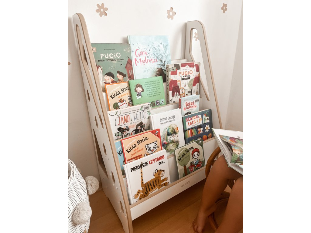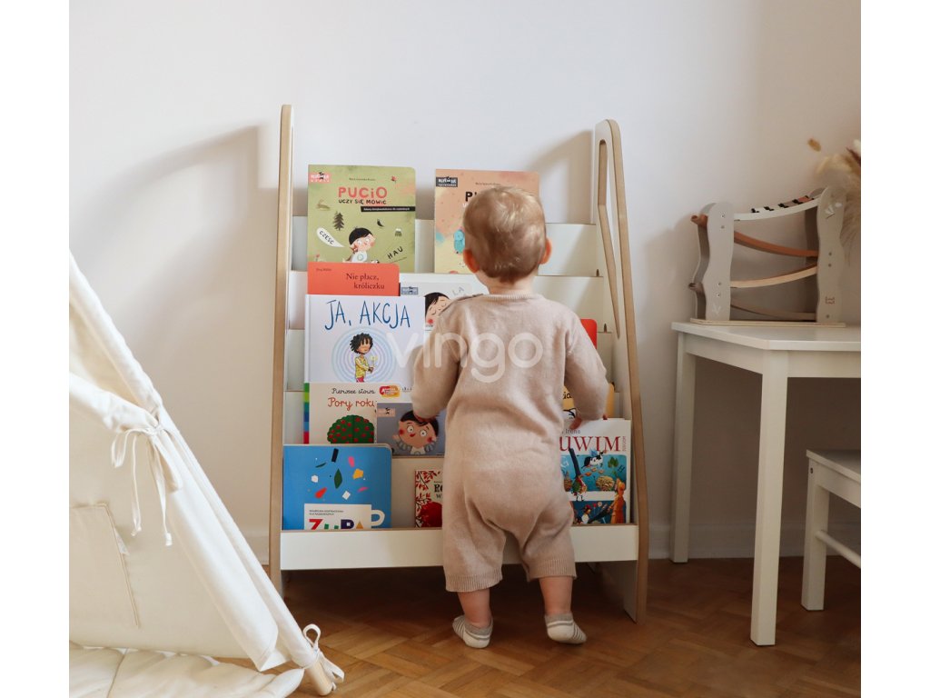 - Önállóságot támogat: Az alacsony hozzáférés a könyvekhez és az egyes könyvek átláthatósága lehetővé teszi a gyerekek számára, hogy könnyen kiválasszák azt, ami érdekli őket, és így tanulják az önállóságot és a rendszerezést. Ez a Montessori könyvespolc ösztönzi a gyakori olvasást és fejleszti az irodalom iránti érdeklődést.