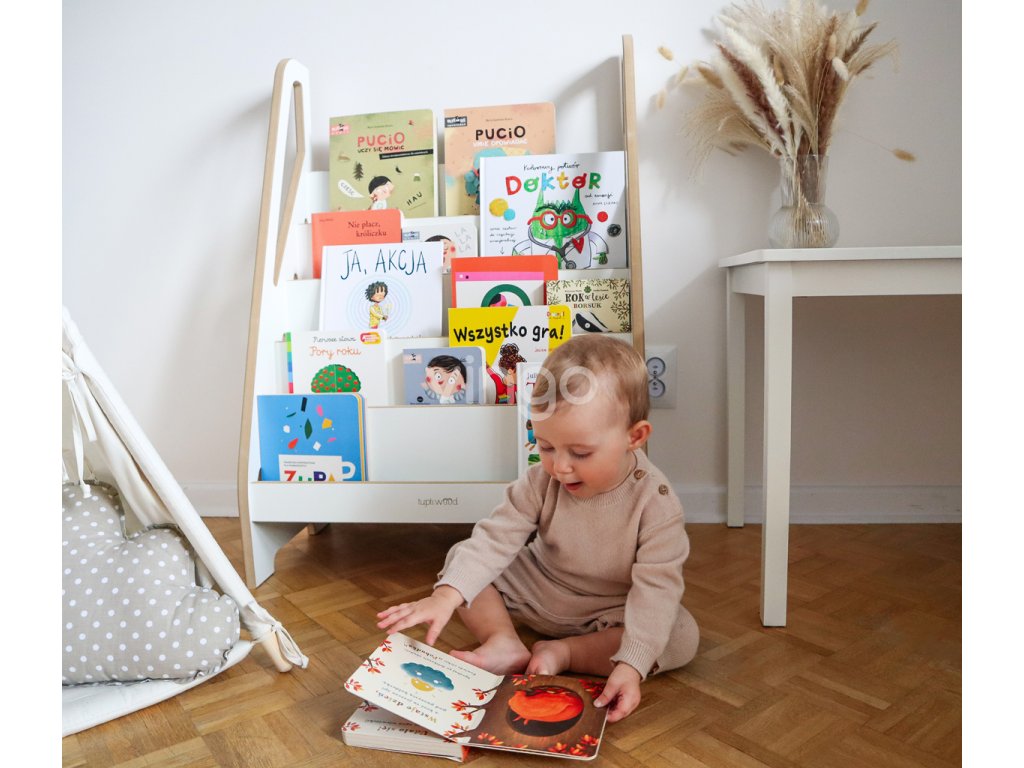Nyitott Montessori-könyvtár 1 éves kortól (fehér), 63 x 90 cm