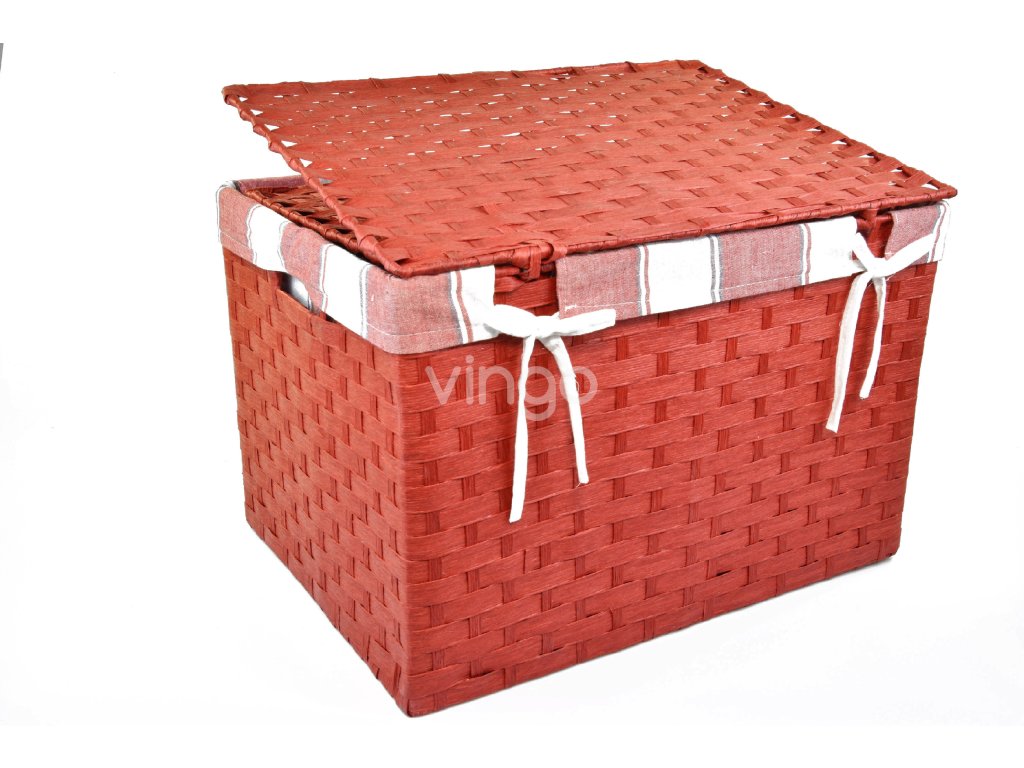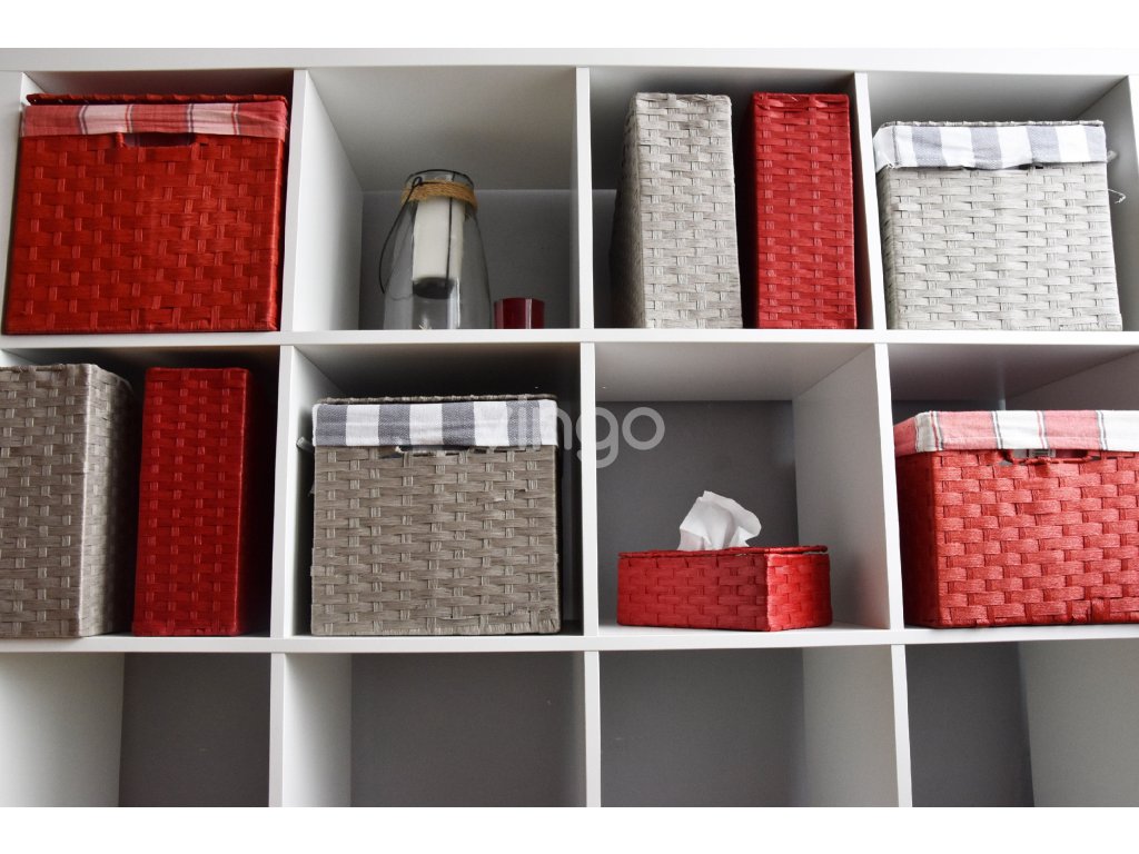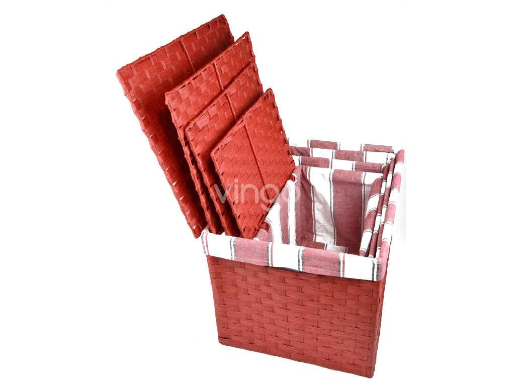 - Mosható anyaggal: A tárolódobozok belsejében piros-fehér csíkos szövet található. A textil csak masnikkal van rögzítve, így könnyen eltávolítható és szükség esetén kimosható.