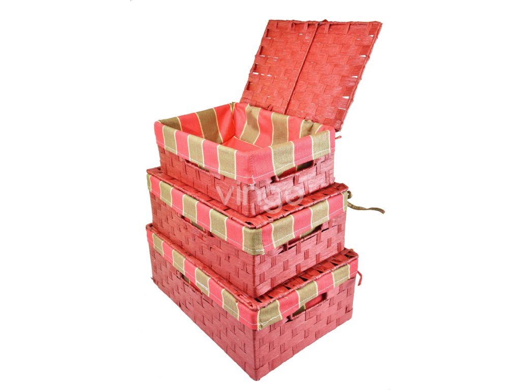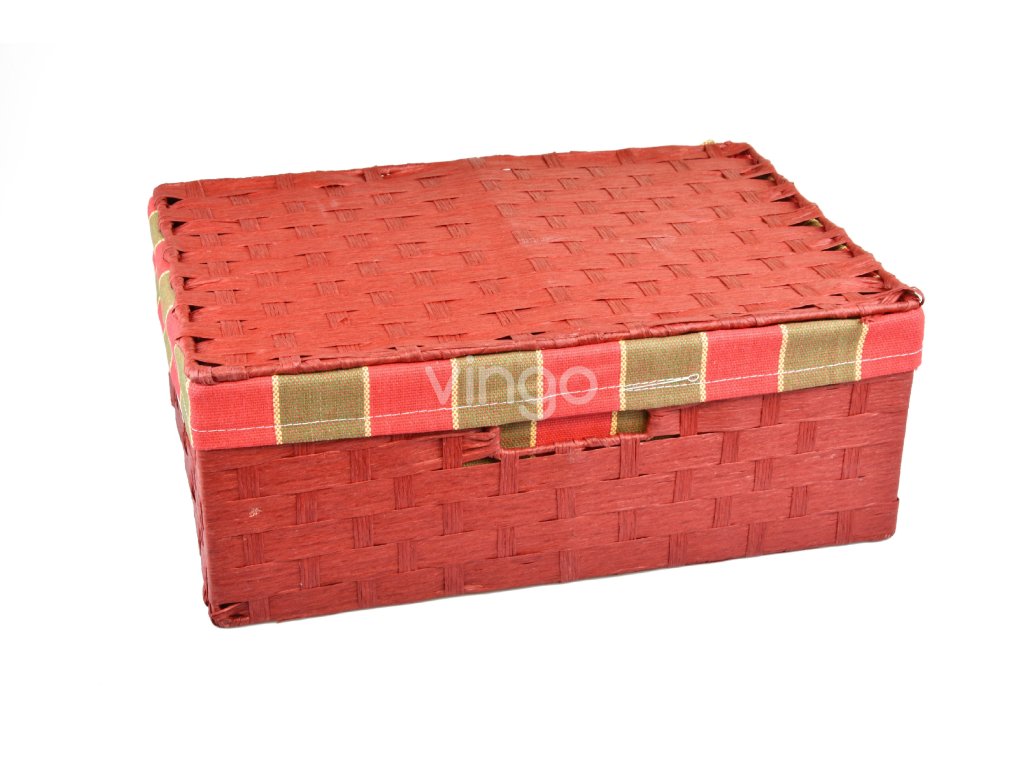 - Mosható anyaggal: A tároló a dobozok szövetet tartalmaznak, amely eltávolítható és mosható. Vörös-barna színű csíkos mintával rendelkezik.