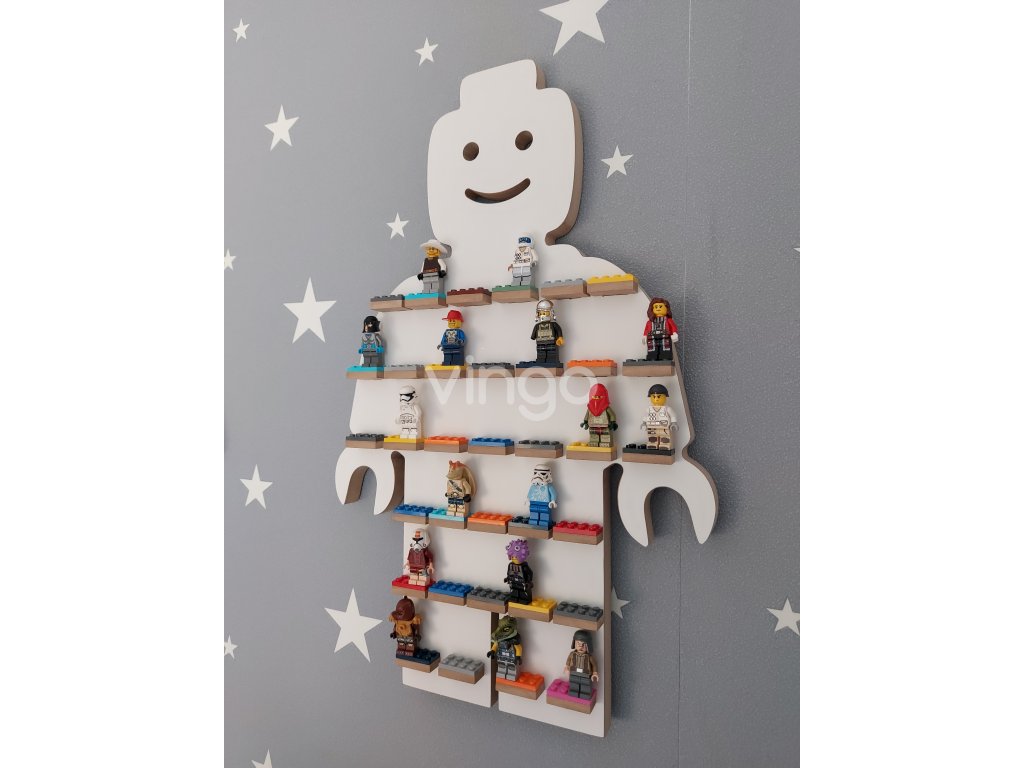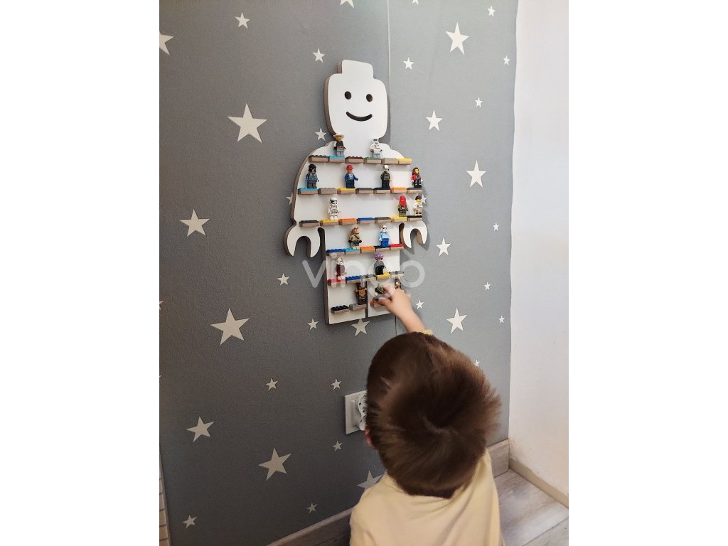 - Praktikus dekoráció. Idővel, ahogy a LEGO kockák egyre nagyobbak lesznek, örök kérdés merül fel, hogyan kell tárolni őket. Egy Lego figura alakú fehér polc segít legalább a figurák rendben tartásában. A polcon lévő figurák nem vesznek el más kockák kuszaságában.