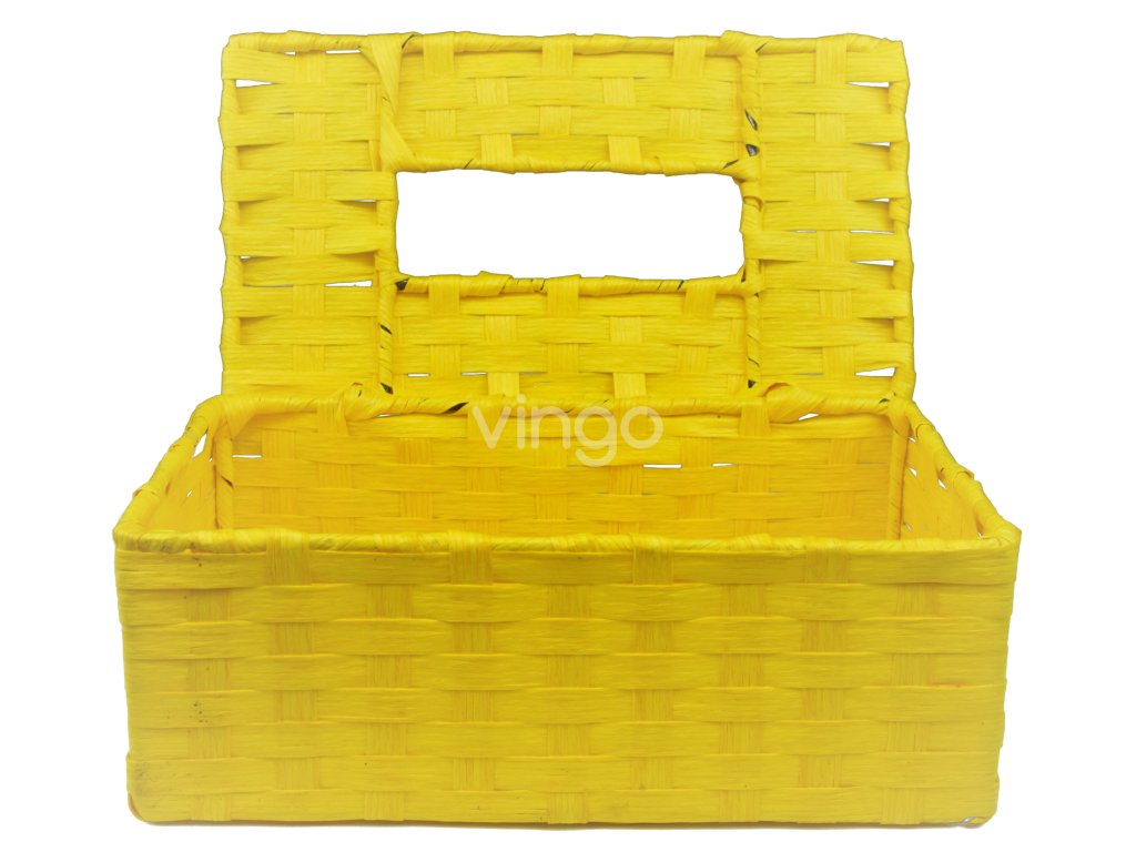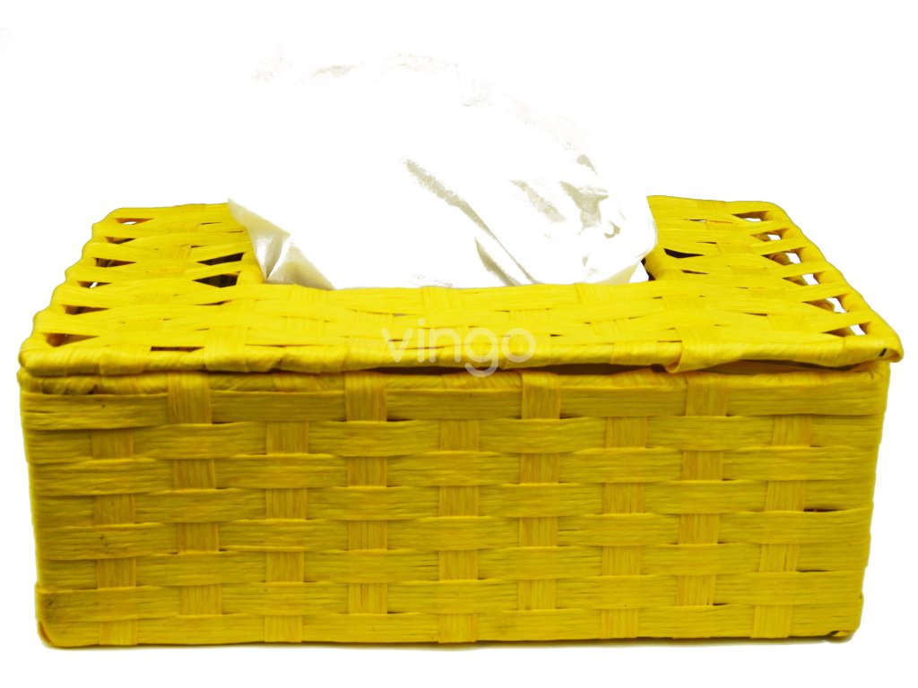 A drótszerkezetű sárga szálas zsebkendős doboz praktikus csuklós fedelű, egy nyíláson keresztül, amin keresztül a zsebkendők kivehetők. Szereted a vidám színeket? Nem tetszenek a nyomatok a boltban vásárolt papírzsebkendő-dobozokon? Vásároljon zsinegből készült csomagot, és könnyen elrejtheti benne a papírdobozt. A doboz többször is használható és nem zavarja a belső teret.Termékinformáció: