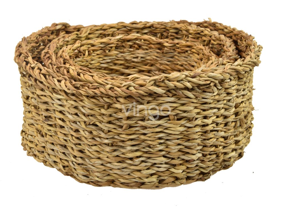 A 3 különböző méretű, tengeri fűből készült tálból álló készletet használhatod apró dolgok tárolására a fürdőszobában és az előszobában.