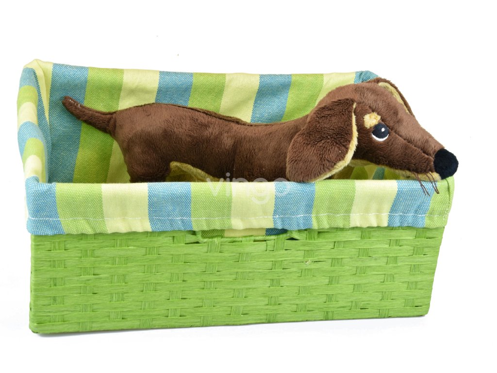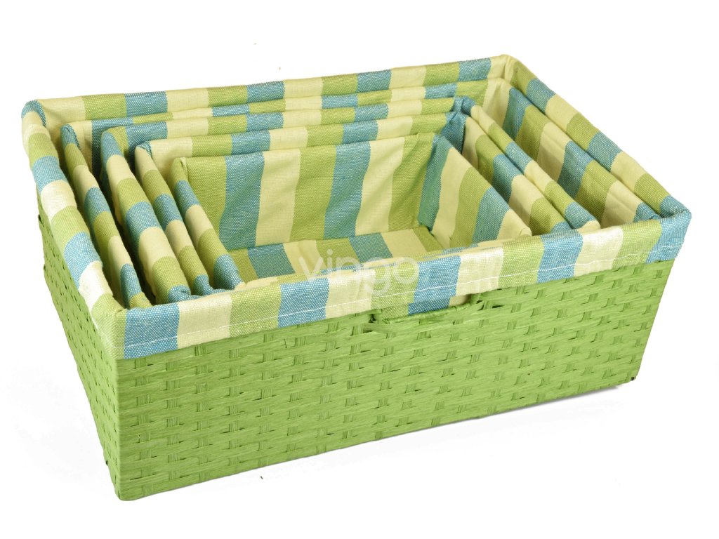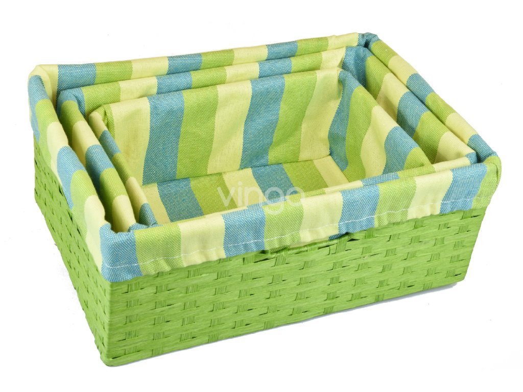 A vidám zöld árnyalatú tárolódobozok gyerekszobába is alkalmasak. Csíkos zöld-kék szövettel vannak bélelve, ami levehető, mosható és szükség esetén visszavihető. A sokféle méretválaszték lehetővé teszi, hogy olyan dobozt válasszon, amely elfér akár polcon, akár szekrényen, akár komódon. A kosarak könnyűek, könnyen hordozhatók, és egyszerű megoldást jelentenek a rendszerezéshez és a gyors tisztításhoz.Termékinformáció: